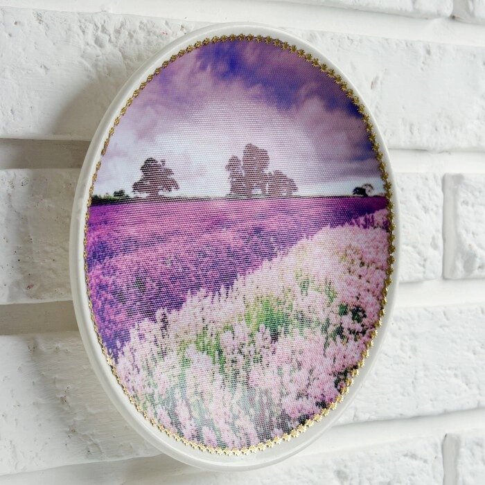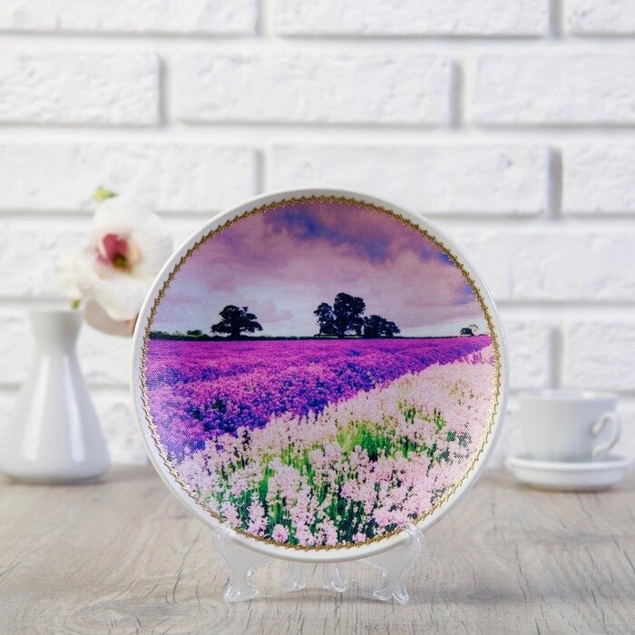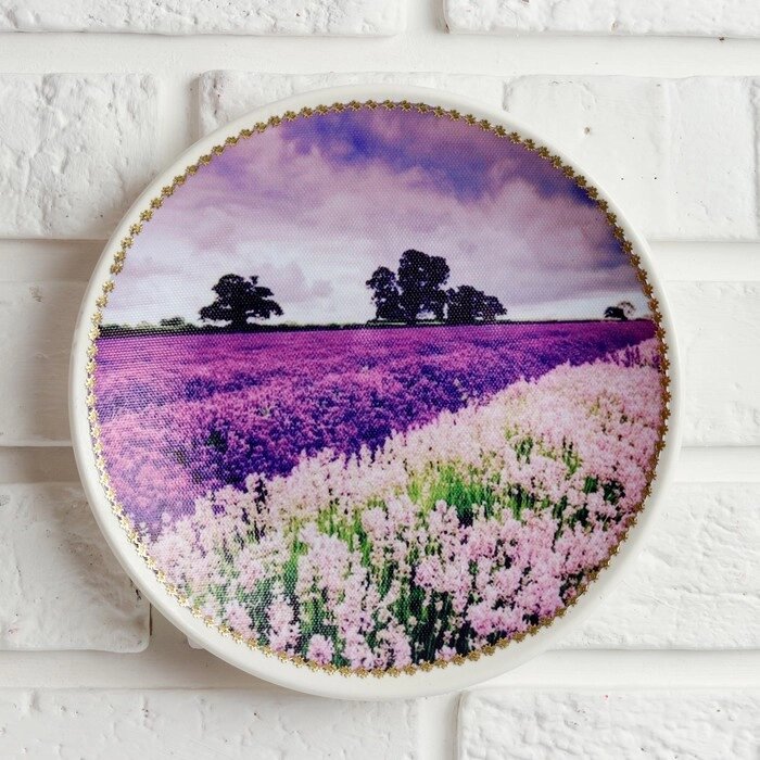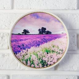 Тарелка декоративная "Лавандовое поле", с рисунком на холсте, D = 19,5 см