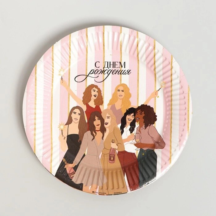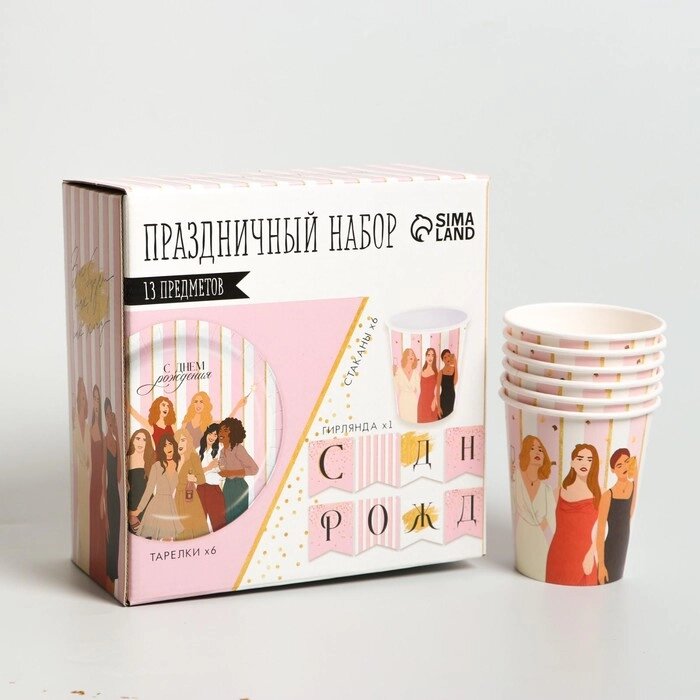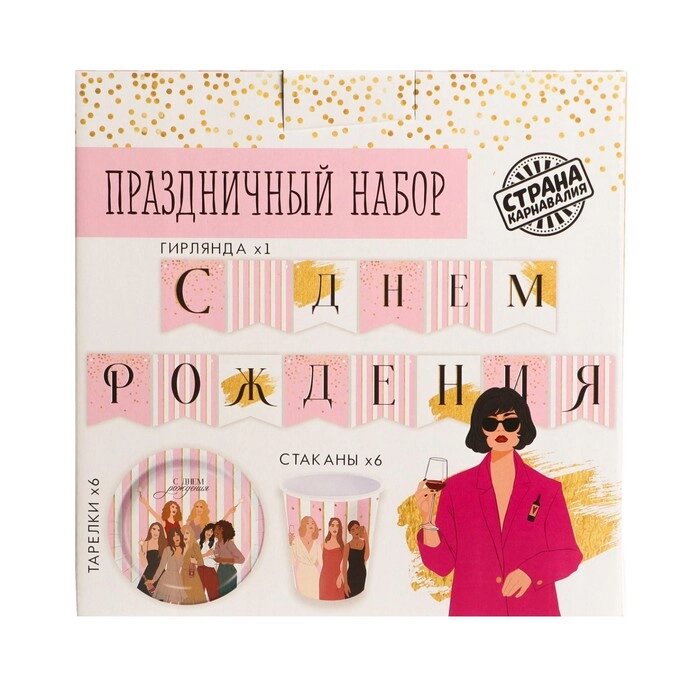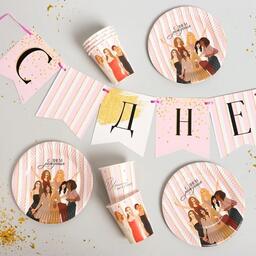 Набор бумажной посуды "С днём рождения, красотка", 6 тарелок, 6 стаканов, 1 гирлянда