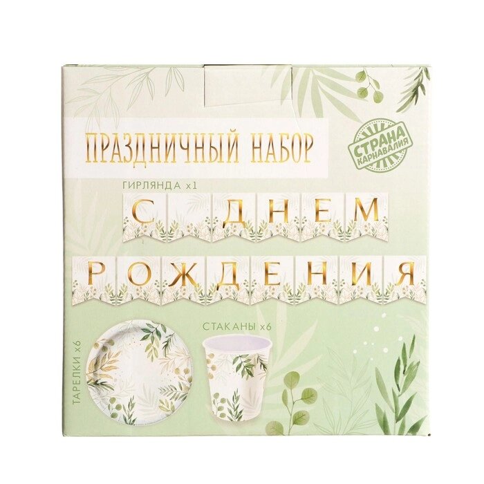 Набор бумажной посуды "Природа", 6 тарелок, 6 стаканов, 1 гирлянда