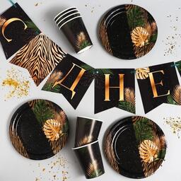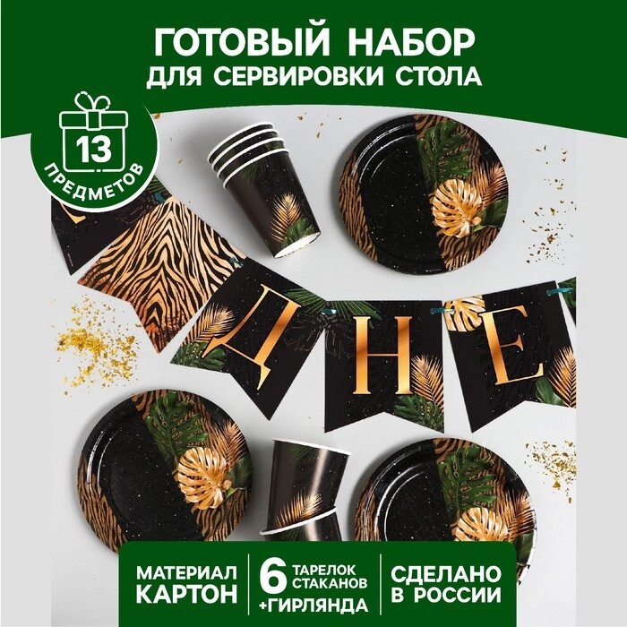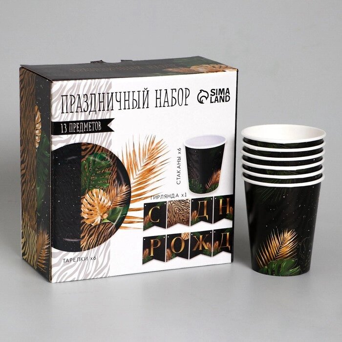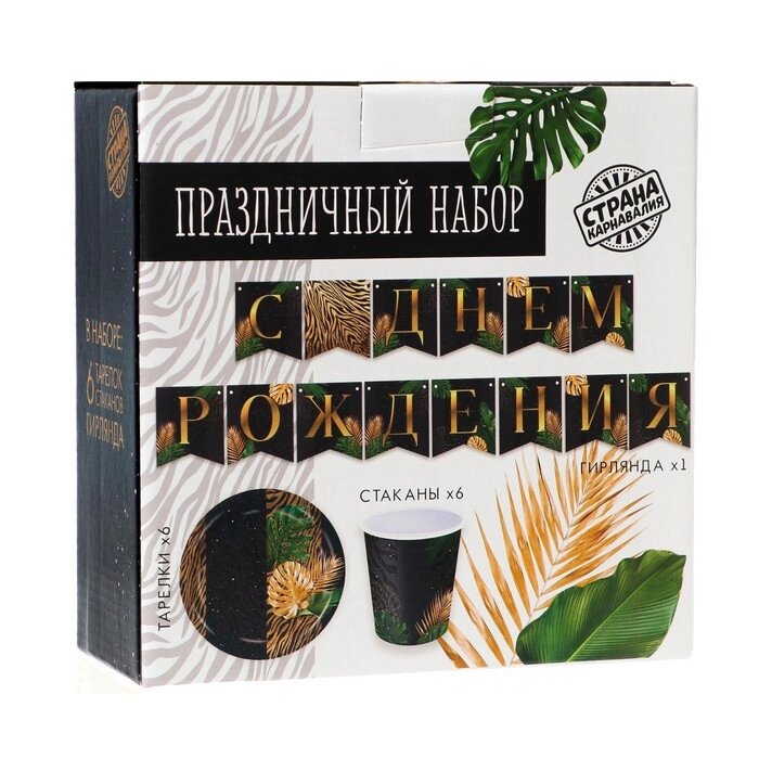 Набор бумажной посуды "С днём рождения", тропики, 6 тарелок, 6 стаканов, 1 гирлянда