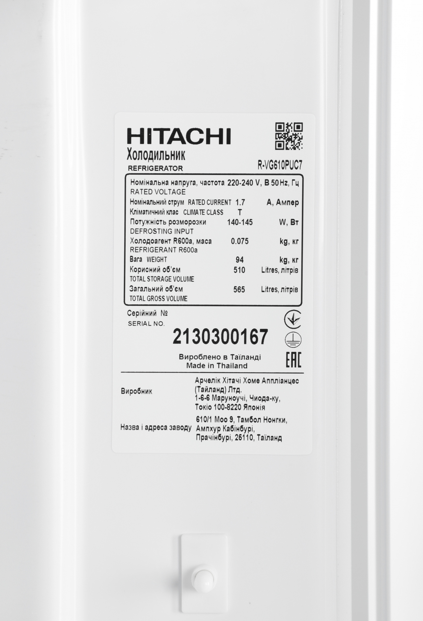 • Общий объем холодильника 510 л