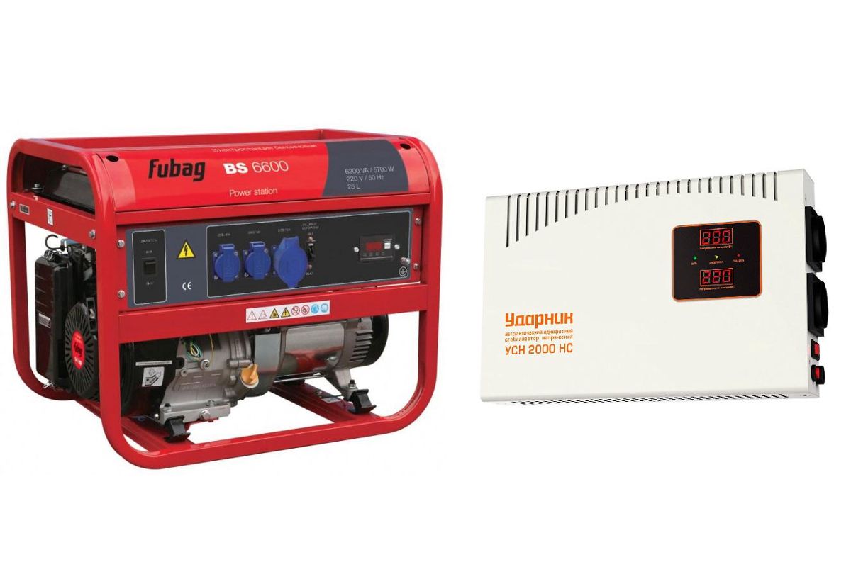 Набор: Бензиновый генератор FUBAG BS 6600+Стабилизатор напряжения УДАРНИК УСН 2000 НС