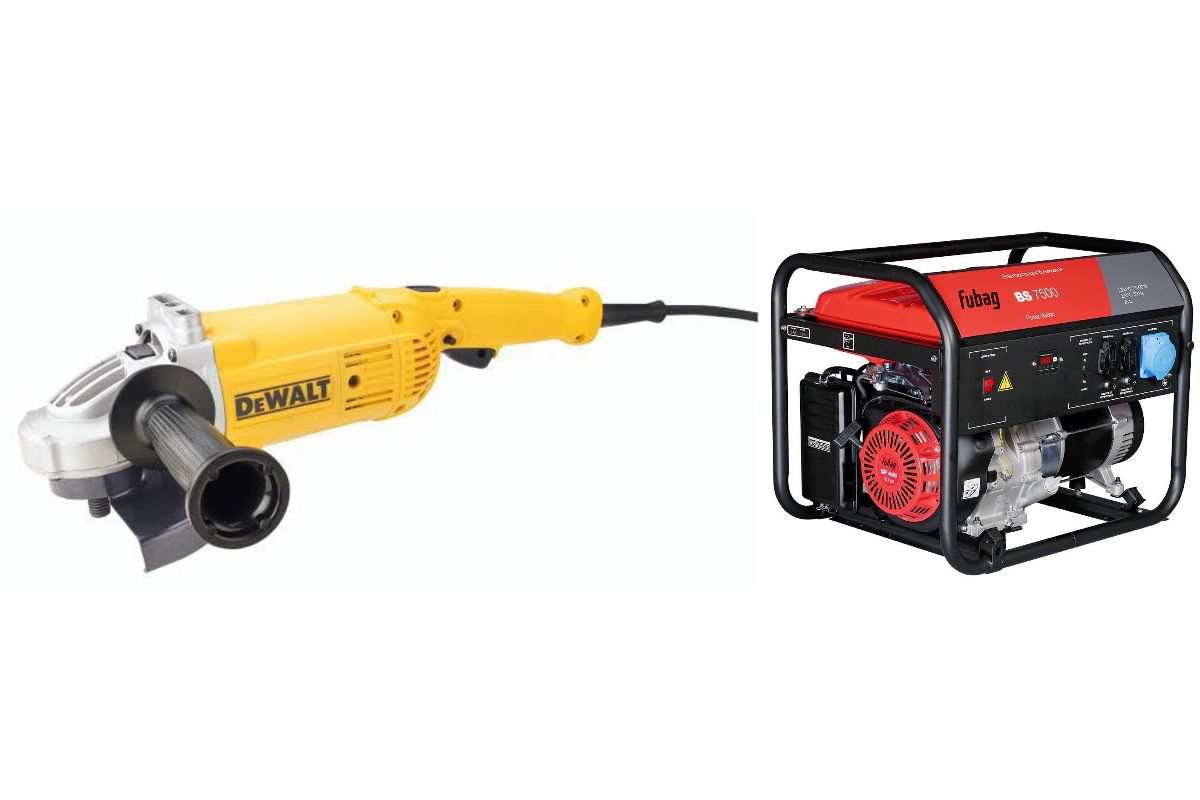 В состав набора входят: Бензиновый генератор FUBAG BS 7500 7.3кВА 29.5А 220В 420м3 25л, Угловая шлифмашина DEWALT DWE496-KS 230мм 2600Вт 6600об./мин. 5.2 кг
