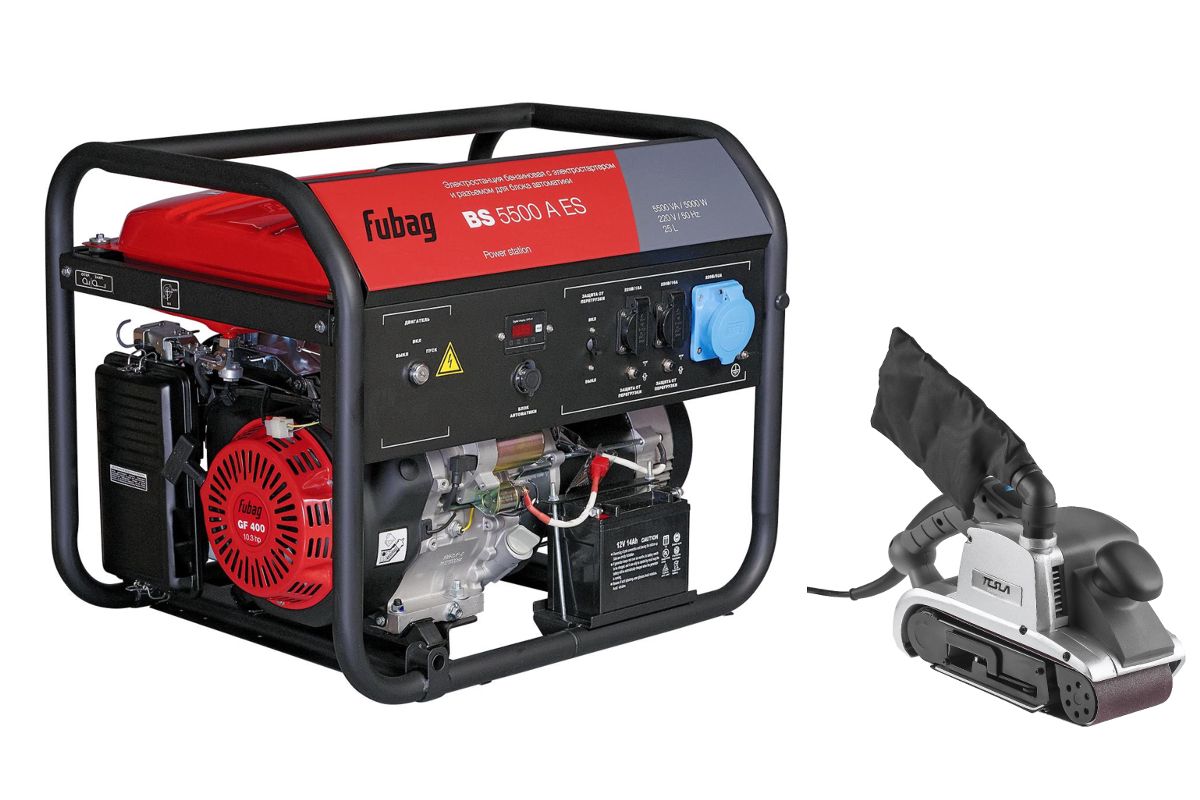 Набор: Бензиновый генератор FUBAG BS 5500 A ES+Машинка шлифовальная ленточная TESLA TS1200