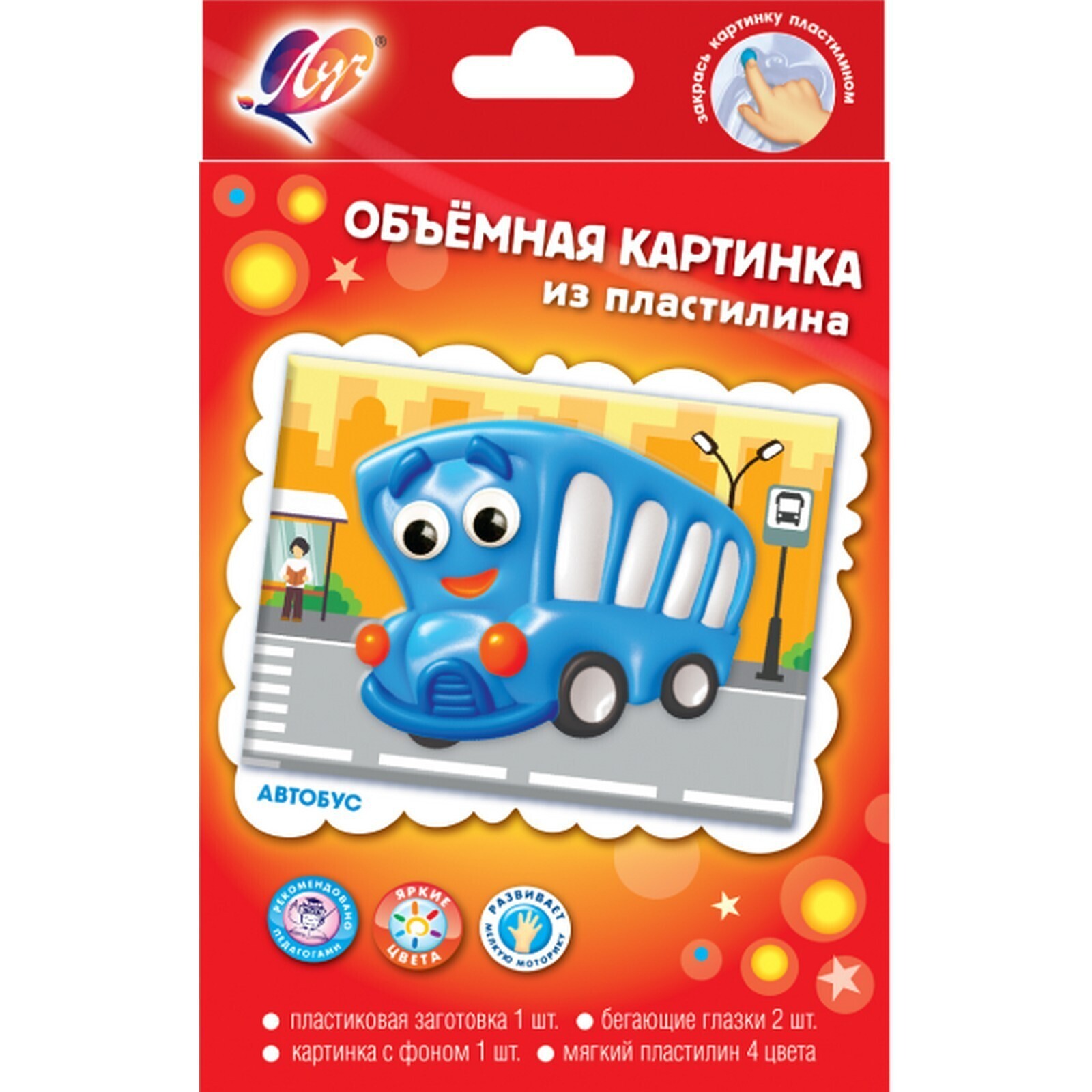 Набор «Объёмная картинка из пластилина МИКС (Котик.Автобус.Дракоша.Самолетик.Зайка)