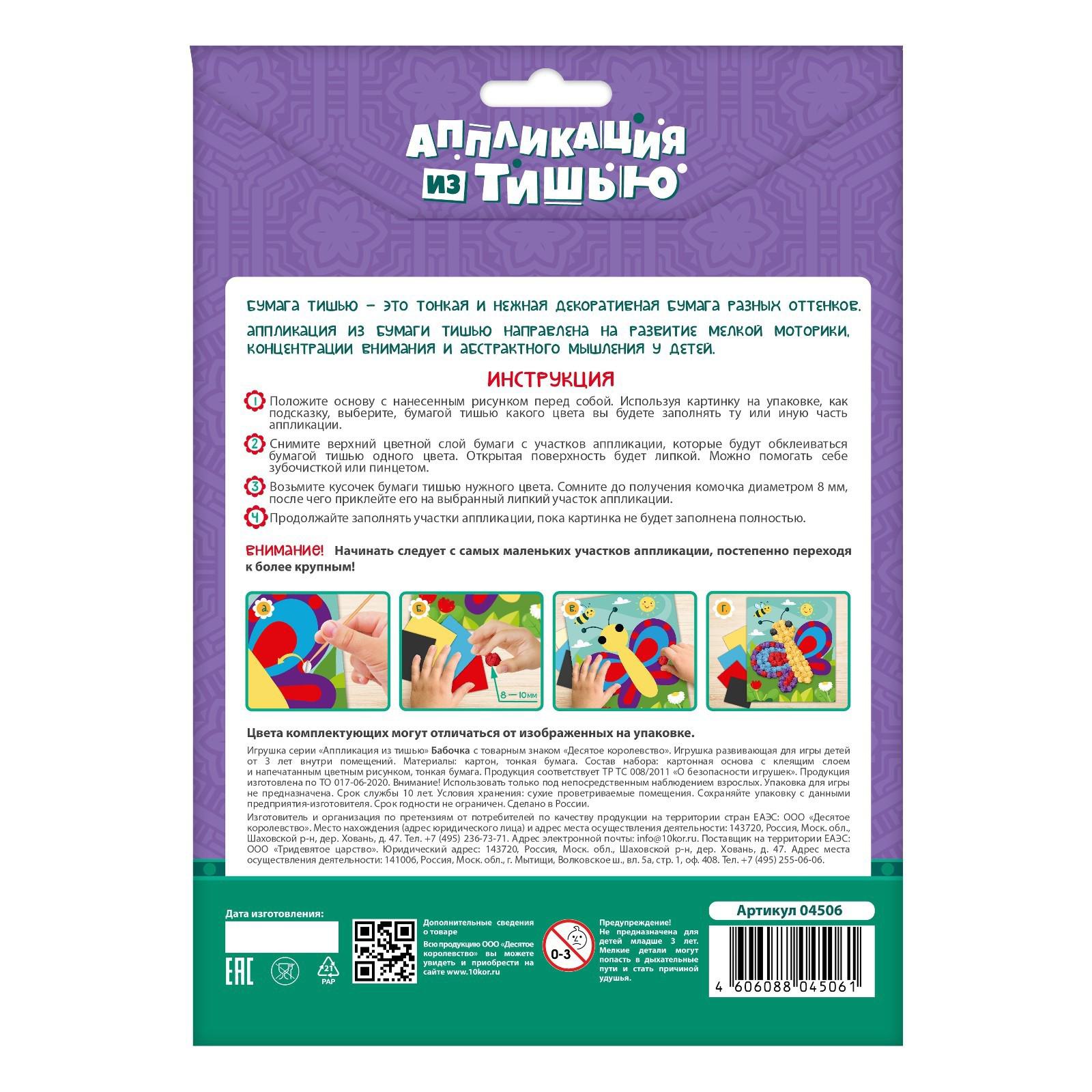 Аппликация из тишью «Бабочка» направлена на развитие мелкой моторики, концентрации внимания и абстрактного мышления у детей.