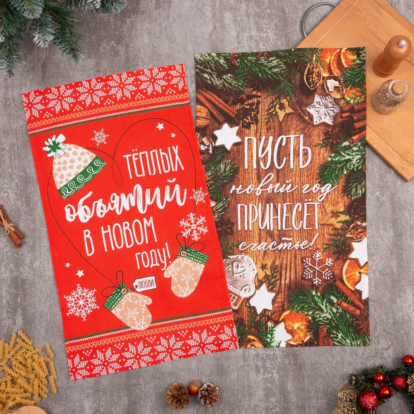Набор кухонных полотенец Доляна «Тёплых объятий» 35х60см-2шт, 100% хл
