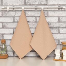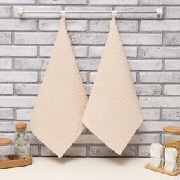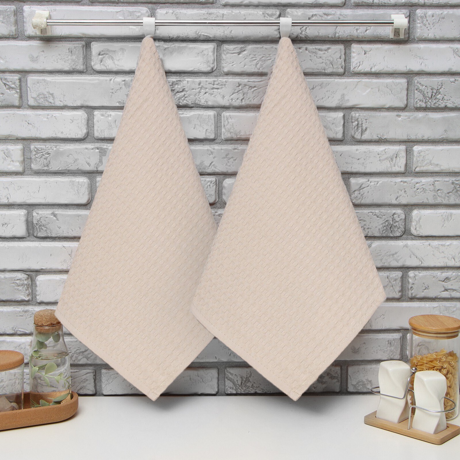 Набор кухонных полотенец Доляна, цвет бежевый, 35х60см-2шт, 100% хл, крупная вафля, 220 гр/м2
