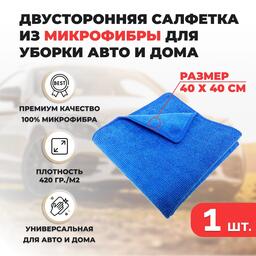 Двусторонняя салфетка из микрофибры для уборки авто и дома, 40х40см, плотность 420 гр/м. кв, синяя