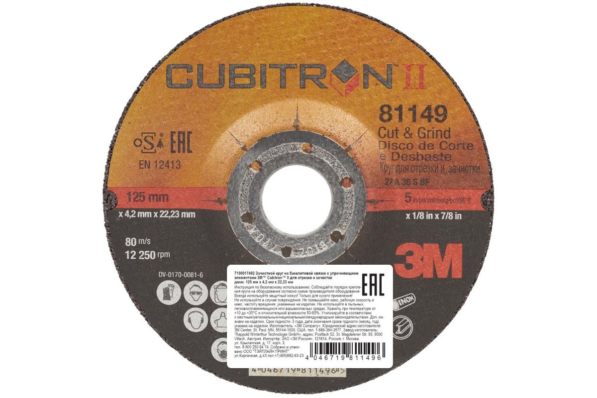 Круг зачистной 3М Cubitron II Cut & Grind 125мм х 4,2мм х 22мм по металлу (81149)