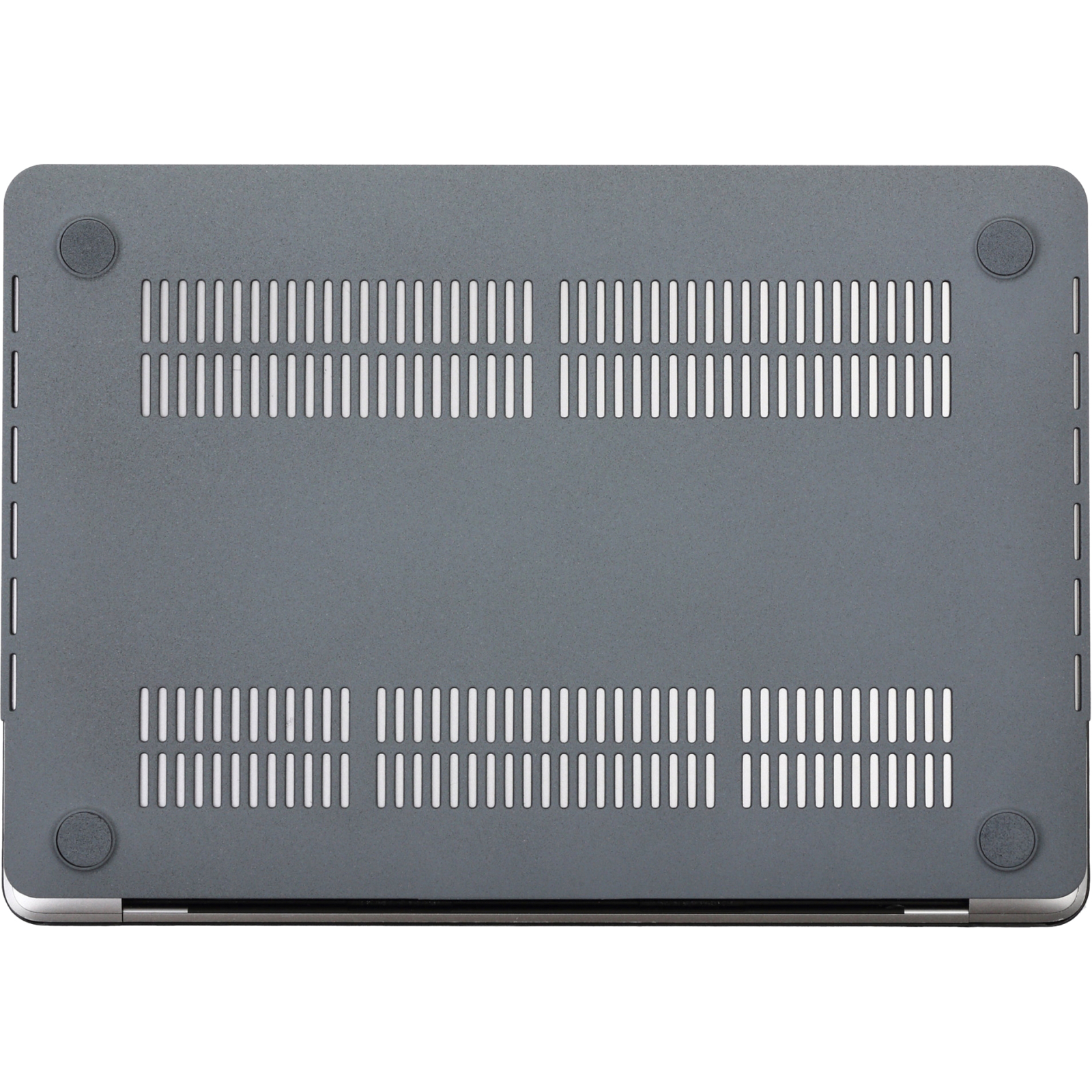 Конструкція нижньої частини чохла забезпечує доступ до всіх роз'ємів, функціональних вирізів, а також систем охолодження MacBook , що запобігає перегріванню пристрою. Гумові стопери на кутах нижньої накладки забезпечать комфортне використання ноутбука на слизьких поверхнях.
