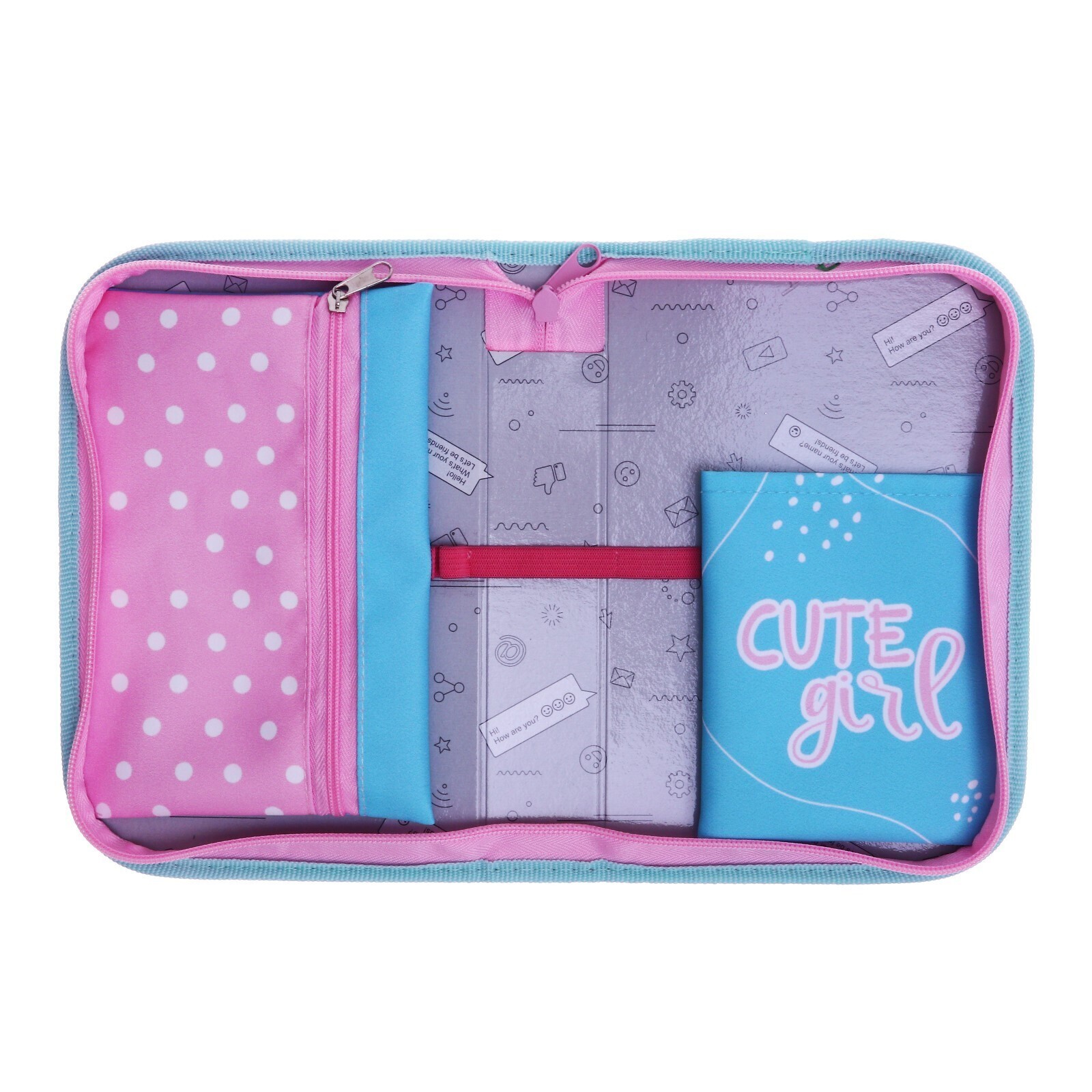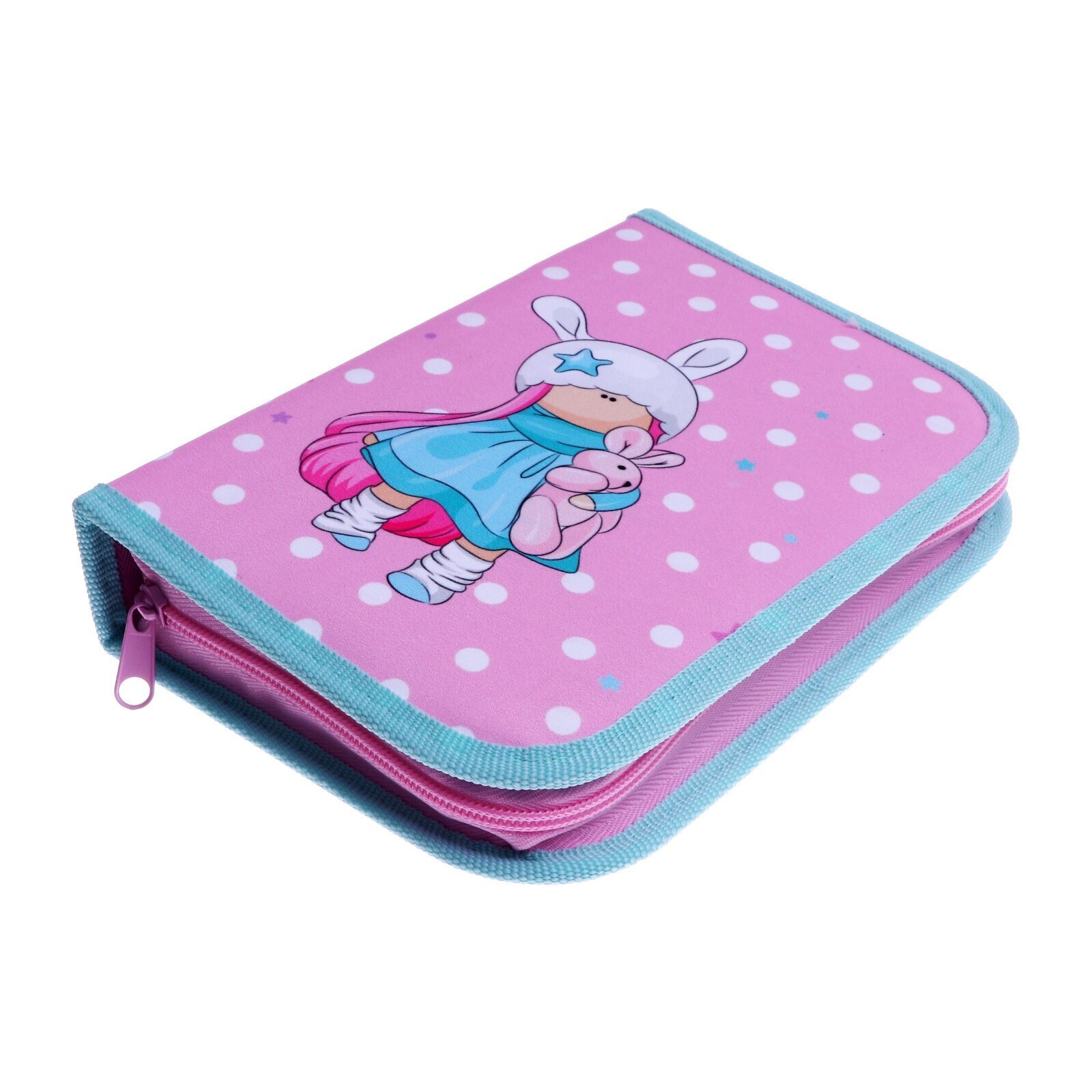 Пенал 1 секция 140 х 210 х 40 мм, откидной карман и косметичка, тканевый, Calligrata Content "Девочка с зайчиком"
