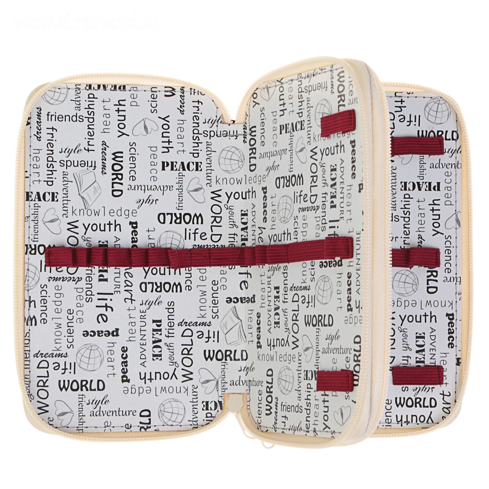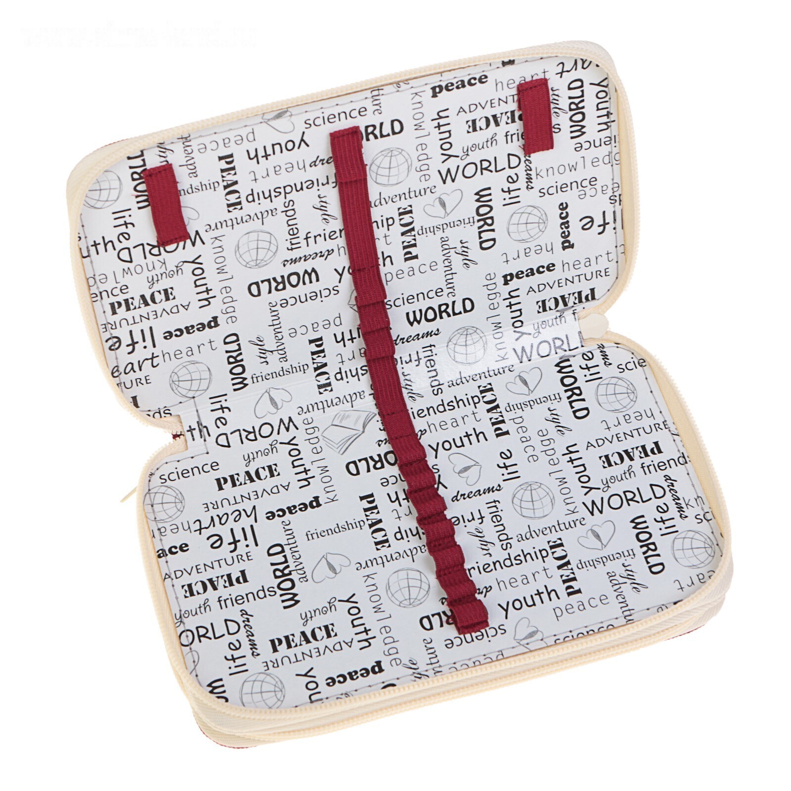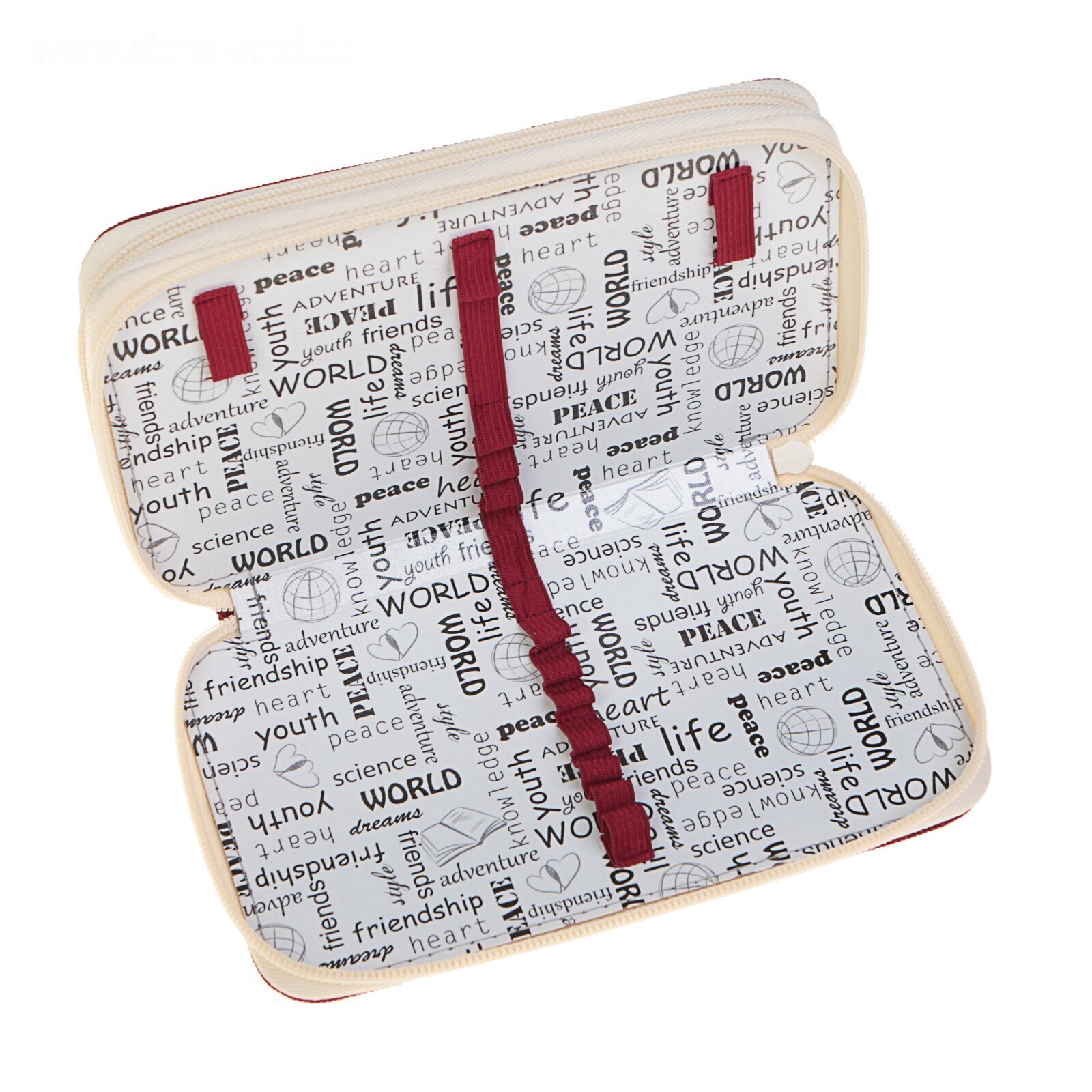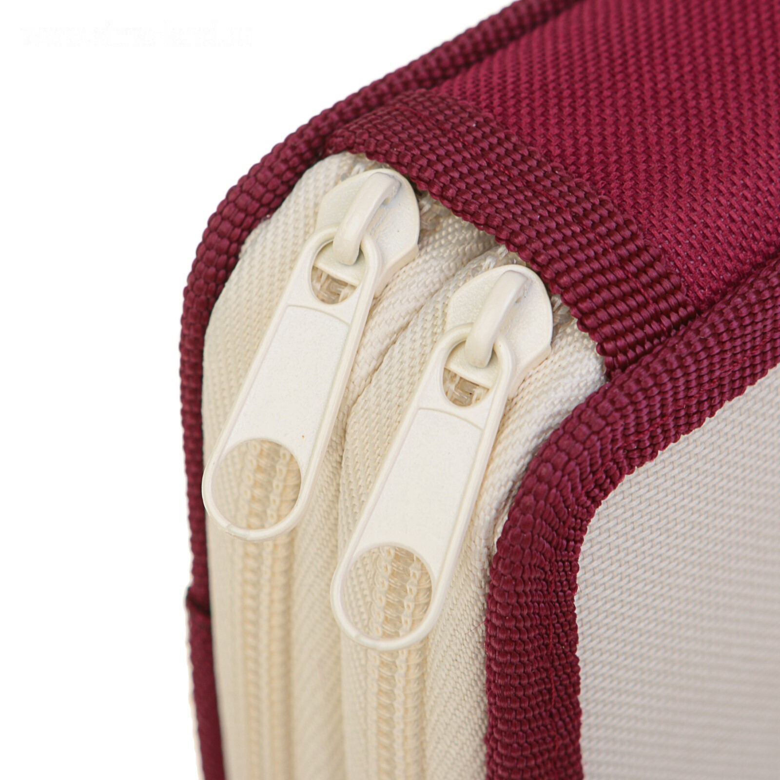 Пенал 2 секции, 110 х 190 мм, тканевый, «Оникс», ПКТ 02-41, цвет бежевый/бордовый