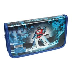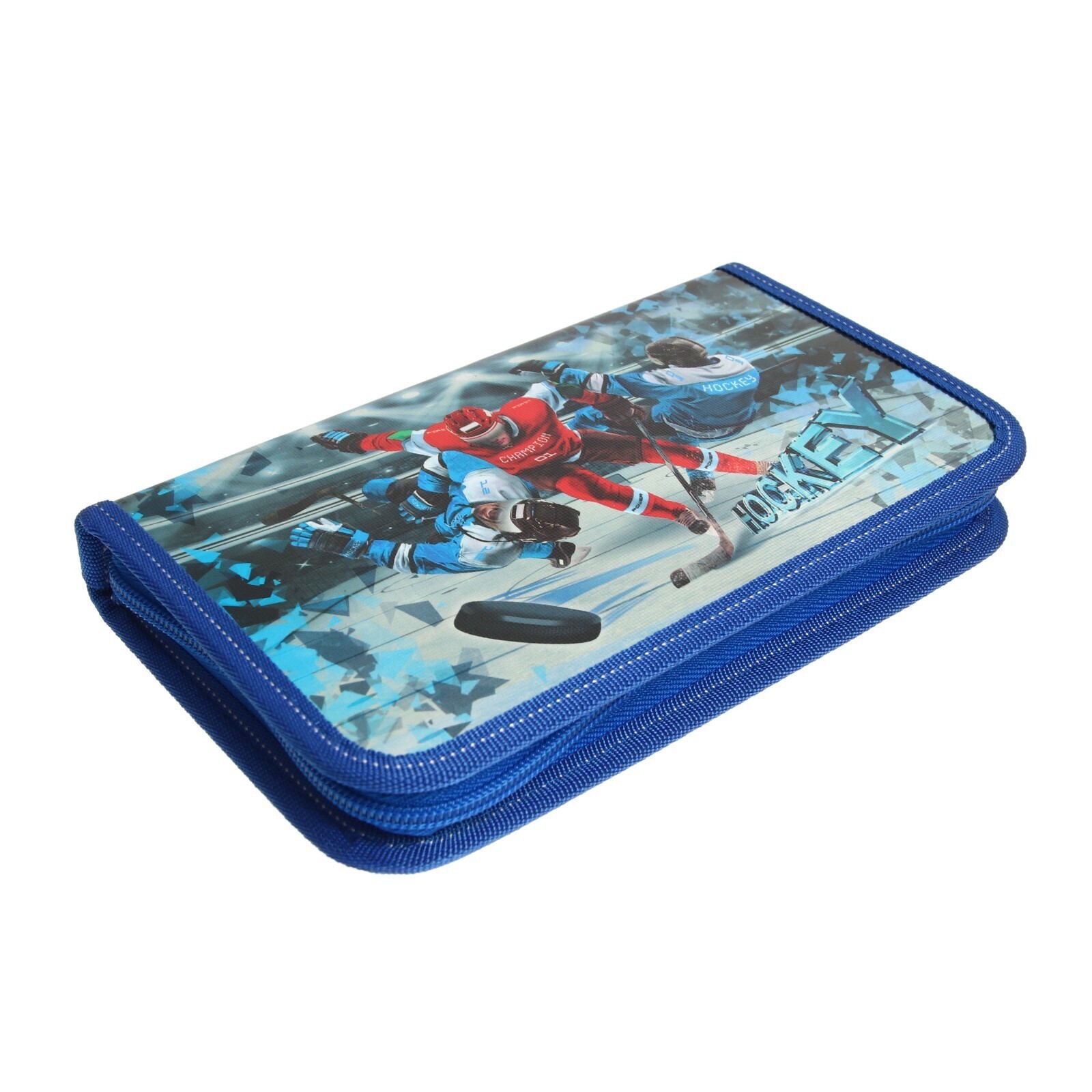 Пенал 1 секция 115 х 205 х 30 мм, Calligrata "Хоккеисты" (рисунок с эффектом металлика), ламинированный картон