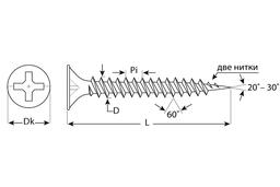 - Мелкий шаг резьбы оптимально подходит для крепления гипсокартона к металлическому профилю и твердым породам дерева;