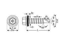 Кровельные саморезы изготовлены из стального прутка с высоким содержанием углерода. Контроль за геометрией самореза начинается с калибровки прутка и заканчивается тщательной проверкой размеров готового изделия. Нормативная твердость стали достигается термической обработкой. Шайба с прокладкой EPDM плотно прижимается к кровельному материалу, герметизируя просверленное отверстие. Шестигранная головка выдерживает большой крутящий момент и значительно облегчает вкручивание самореза.