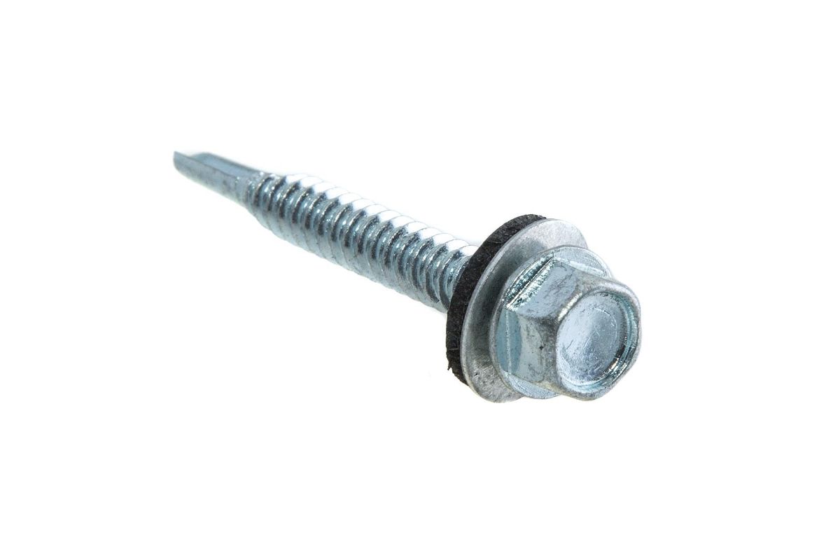 Шестигранная головка с шайбой и резиновой прокладкой, наконечник-сверло. Резиновая прокладка предотвращает попадание воды через крепление. Во время монтажа рекомендуется применять инструмент с ограничением усилия. Это предотвратит деформацию резиновой шайбы. Оцинкованный. Используется для крепления кровельных материалов к металлическим и деревянным каркасам. Дополнительное цветное окрашивание позволяет использовать их при крепеже цветных кровельных материалов, таких как: металлочерепица, «ондулин» и т.п.