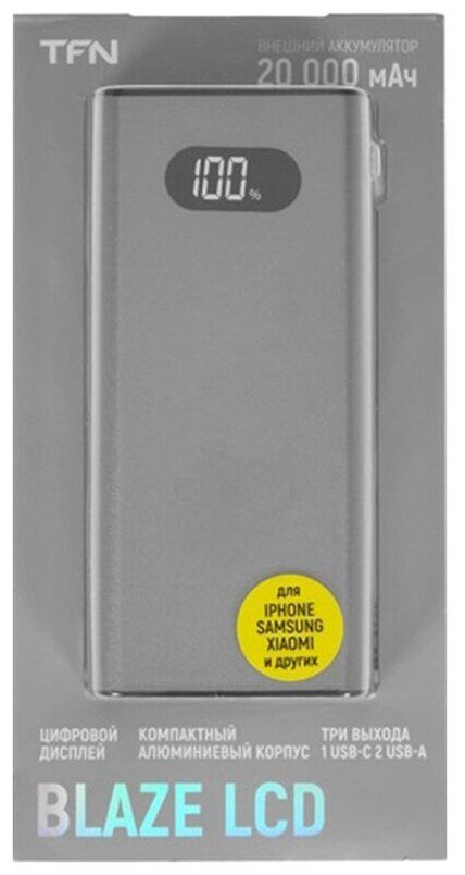 Описание товара Внешний аккумулятор TFN 20 000mAh Blaze LCD gray