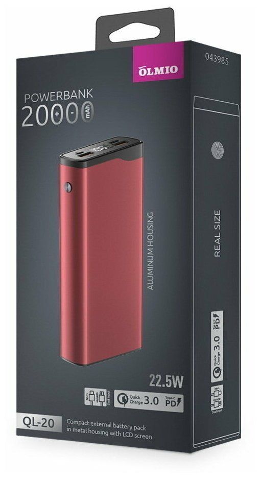 Описание товара Внешний аккумулятор OLMIO QL-20, 20000mAh, red