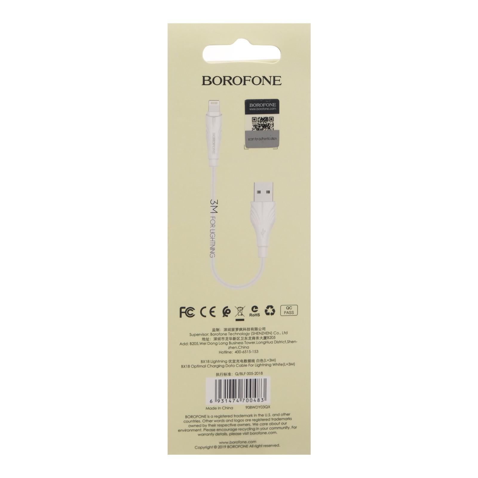Кабель Borofone BX18, Lightning - USB, 2 А, 3 м, белый
