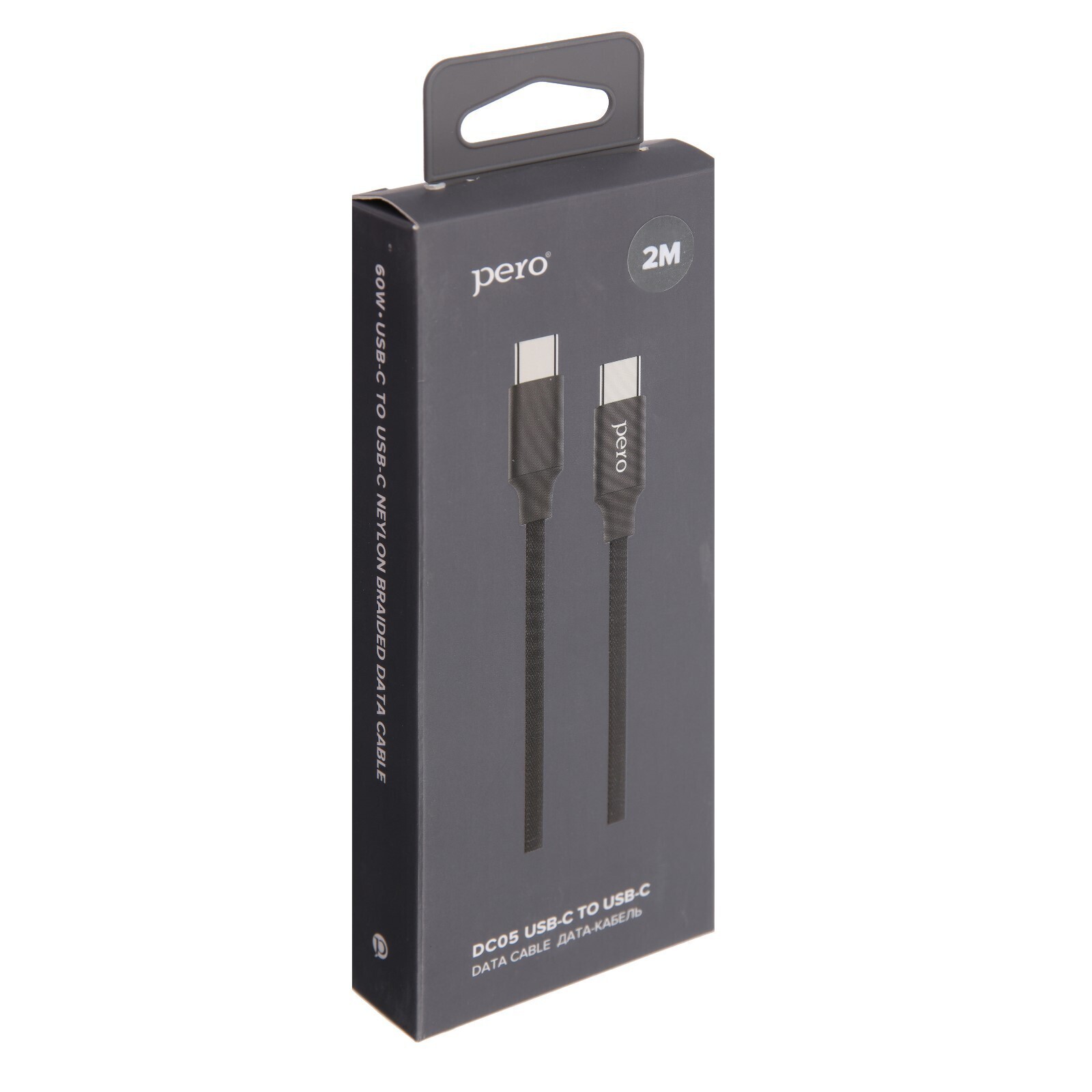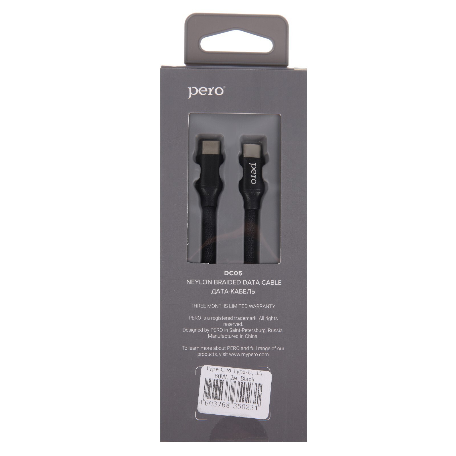 Кабель PERO DC-05 Type C - Type C, 3А, 2м, черный
