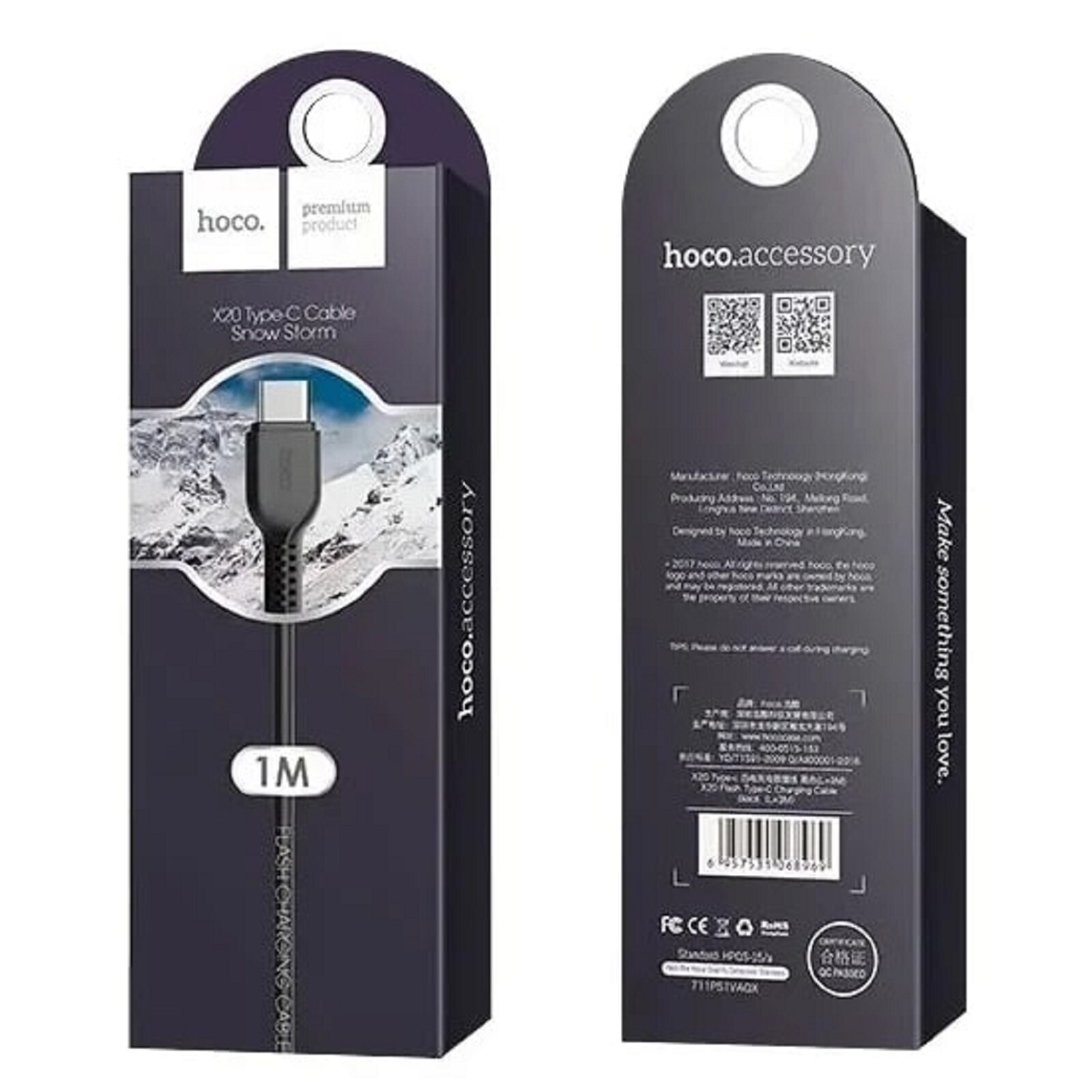 Кабель Hoco X20, Type-C - USB, 3 А, 1 м, PVC оплетка, чёрный