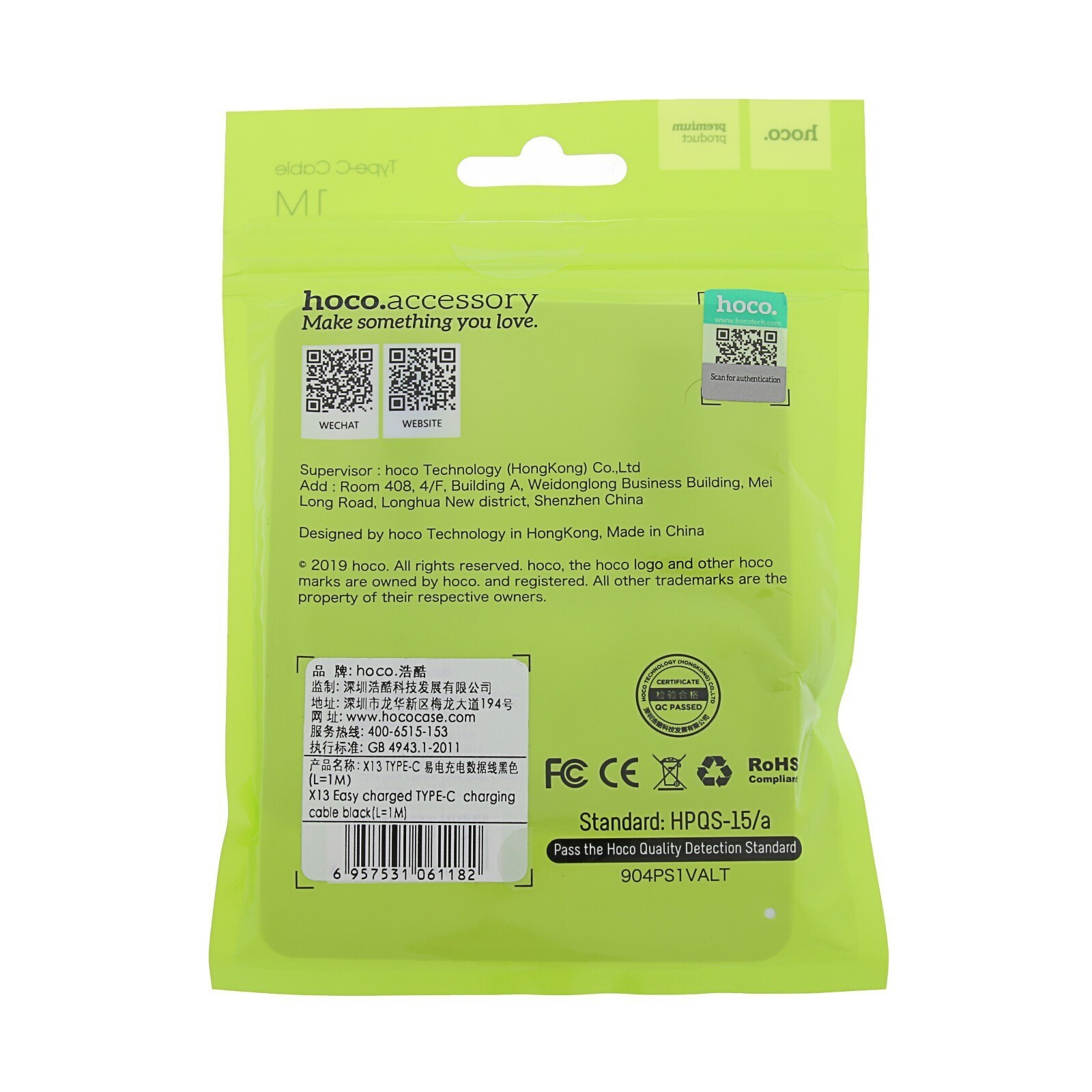 Кабель Hoco X13, Type-C - USB, 3 А, 1 м, PVC оплетка, чёрный