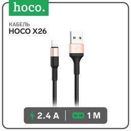 Кабель Hoco X26, Lightning - USB, 2,4 А, 1 м, нейлоновая оплетка, чёрно-золотистый