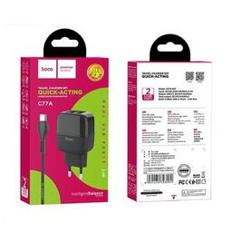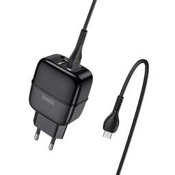 Сетевое зарядное устройство Hoco C77A, 2хUSB, 2.4 А, кабель microUSB, 1 м, черное