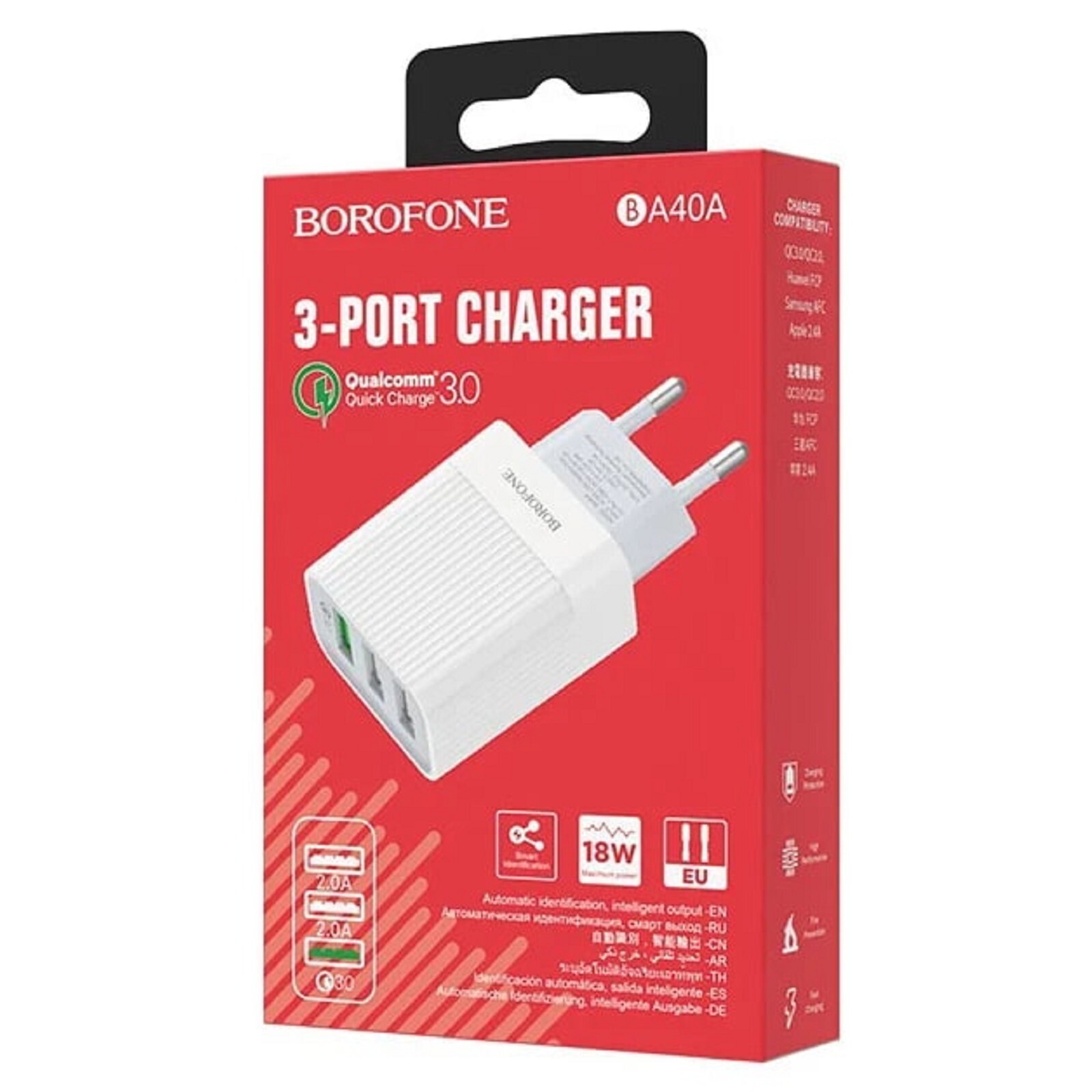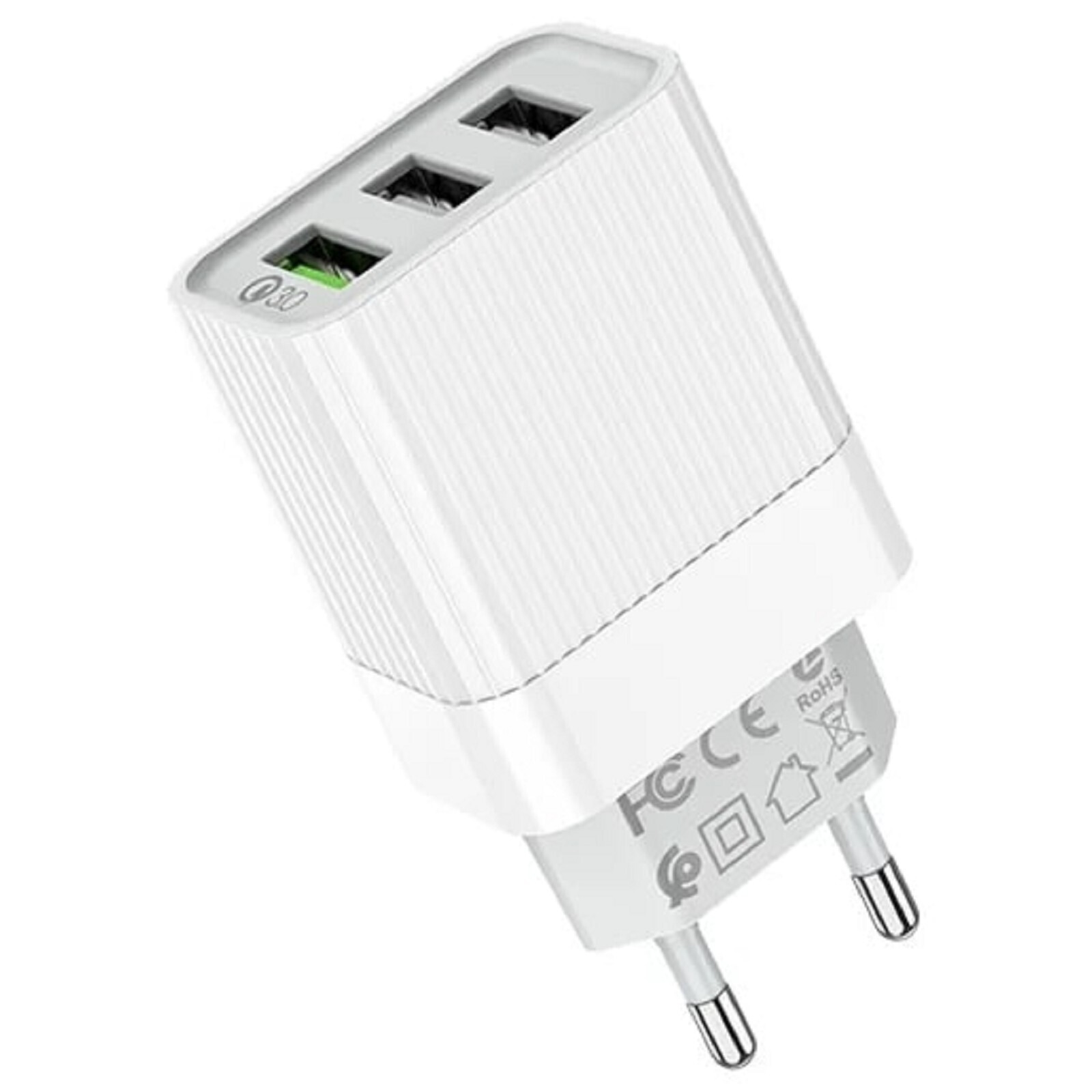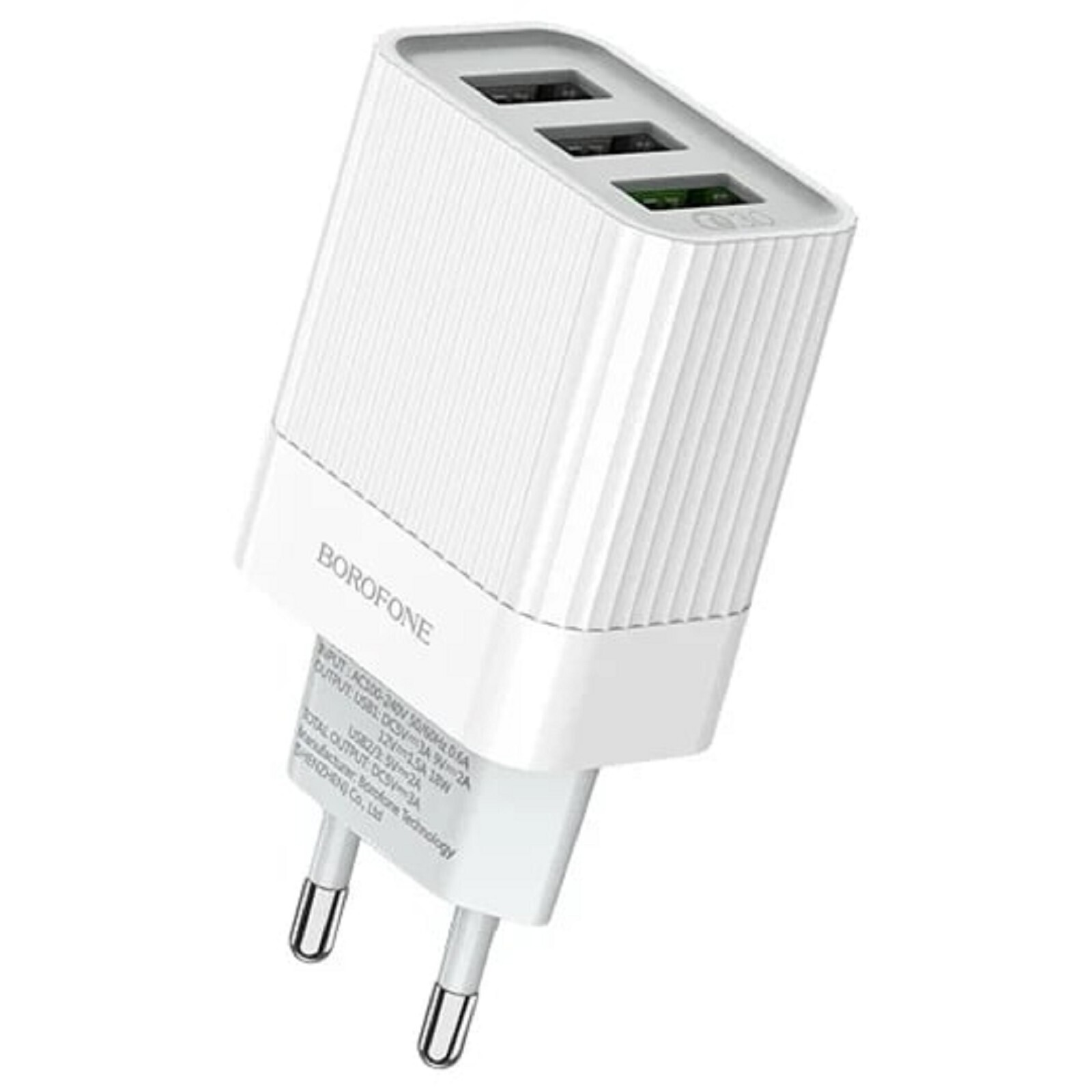 Сетевое зарядное устройство Borofone BA40A, 3xUSB, QC3.0, 3 А, белое