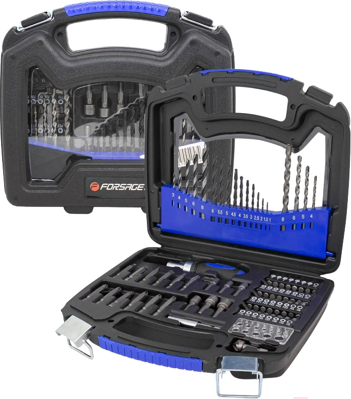 - Оснастка в наборе бита (53 шт.), головка (7 шт.), зенкер (1 шт.), сверло (20 шт.)