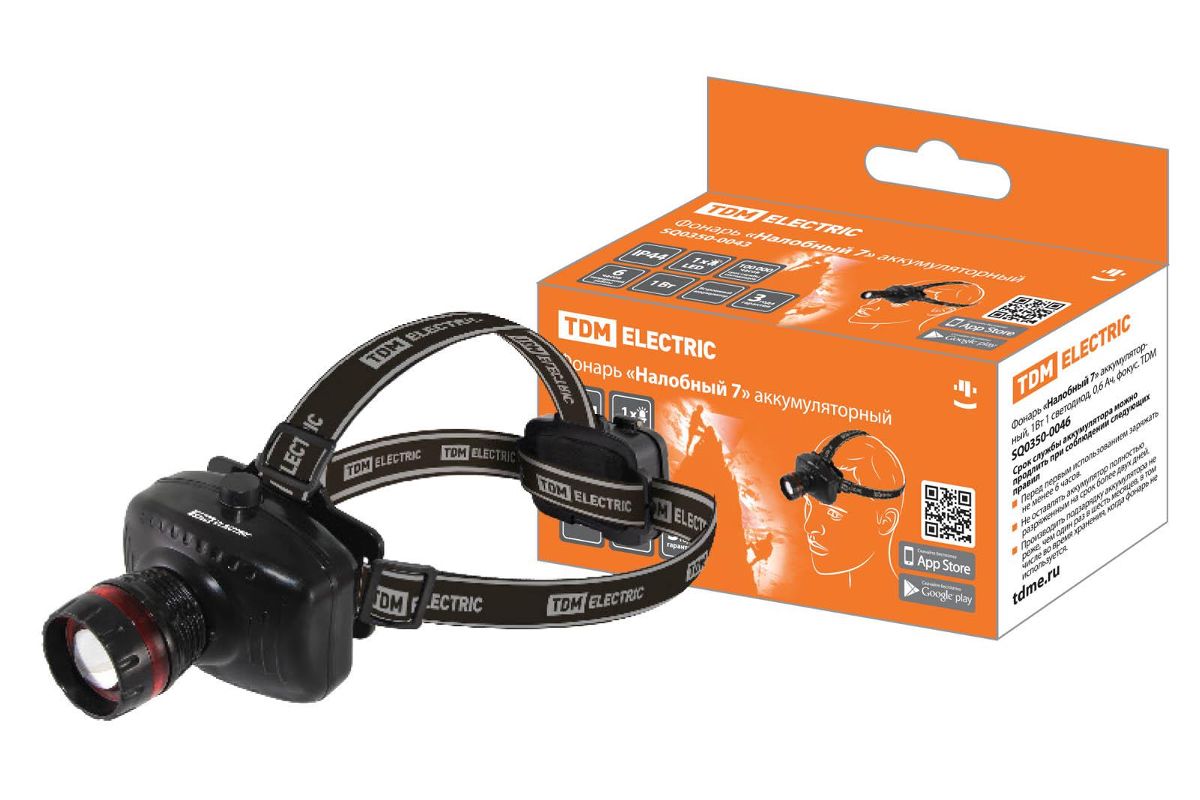 Фонарь TDM SQ0350-0046 Налобный 7 аккумуляторный, 1Вт 1 светодиод, 0,6 Ач, фокус.