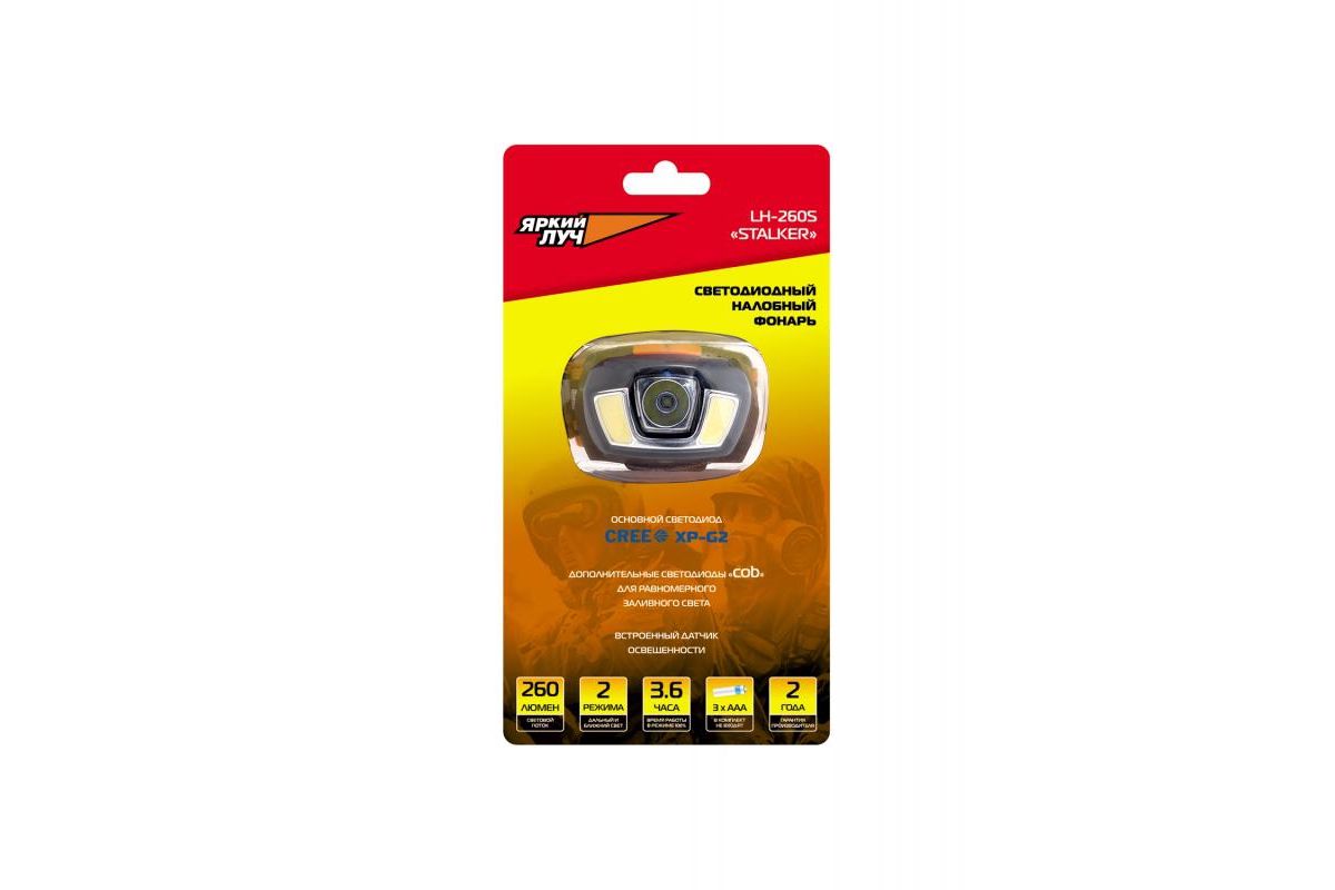 Фонарь налобный ЯРКИЙ ЛУЧ LH-260S ''Stalker'' CREE XP-G2 260лм +2 COB диммер датчик освещ. на 3xAAA