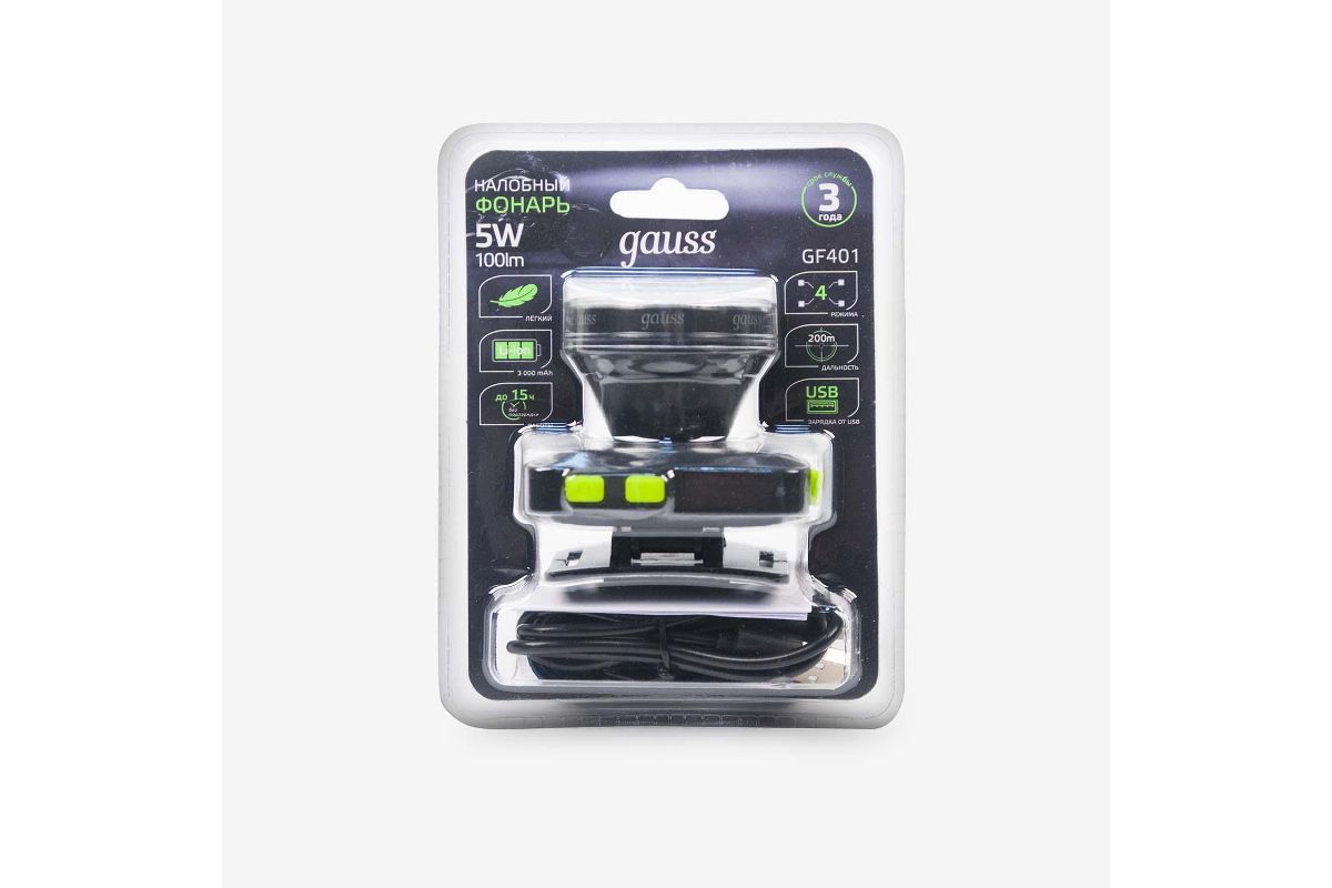 Фонарь налобный GAUSS GFL401 5W 100lm диммируемый Li-ion 3000mAh LED (GF401)