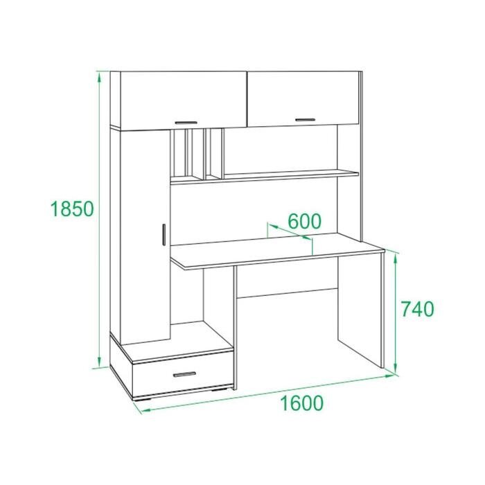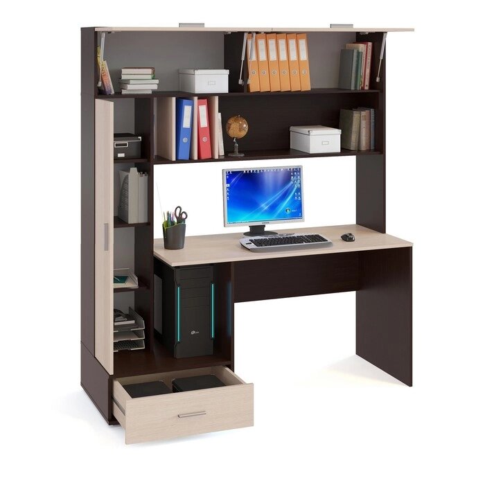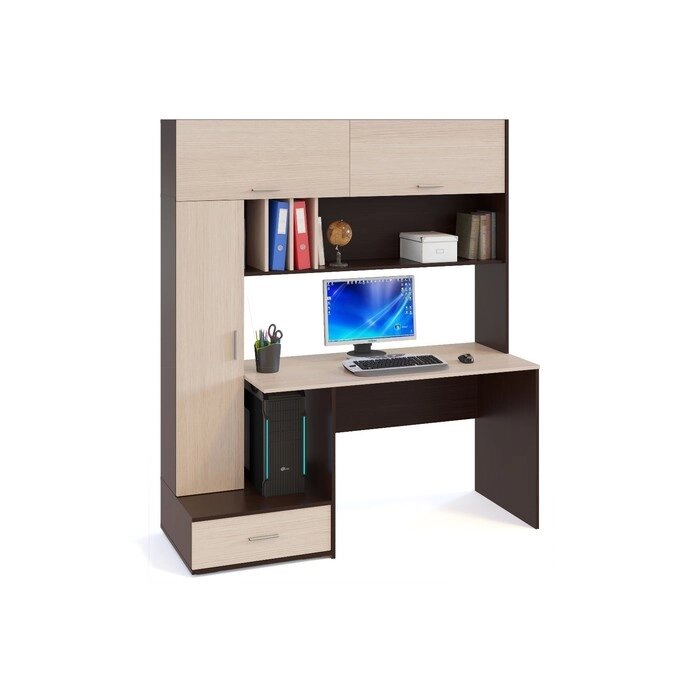 Компьютерный стол, 1600 600 1850 мм, цвет венге / белёный дуб
