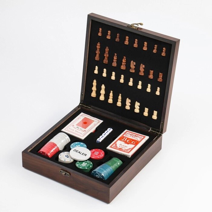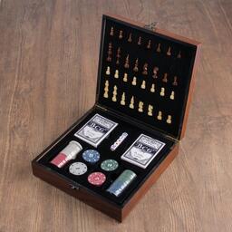 Набор шахмат с покером, 100 фишек, 2 колоды, 5 кубиков 1.31.3 см, пешка 2 см, ферзь 4.5 см