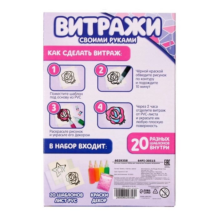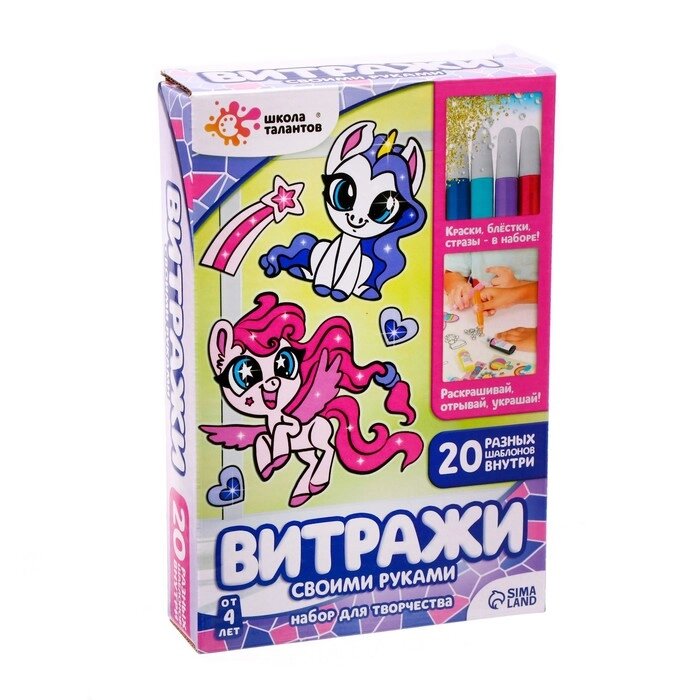 Набор для творчества "Раскрась витражики. Пони", 20 шт. в наборе