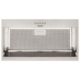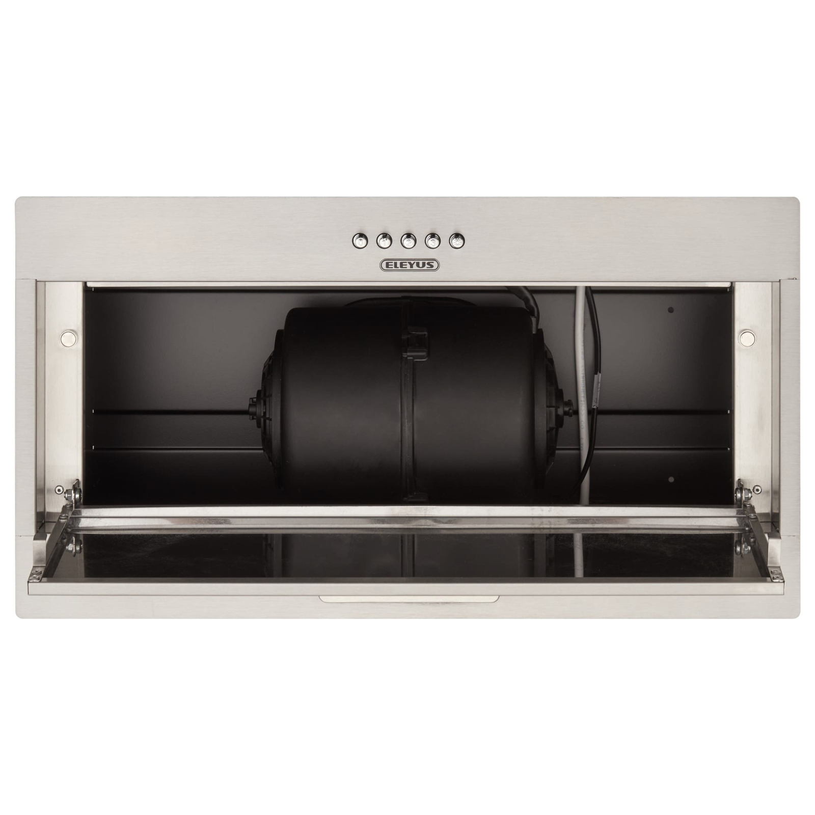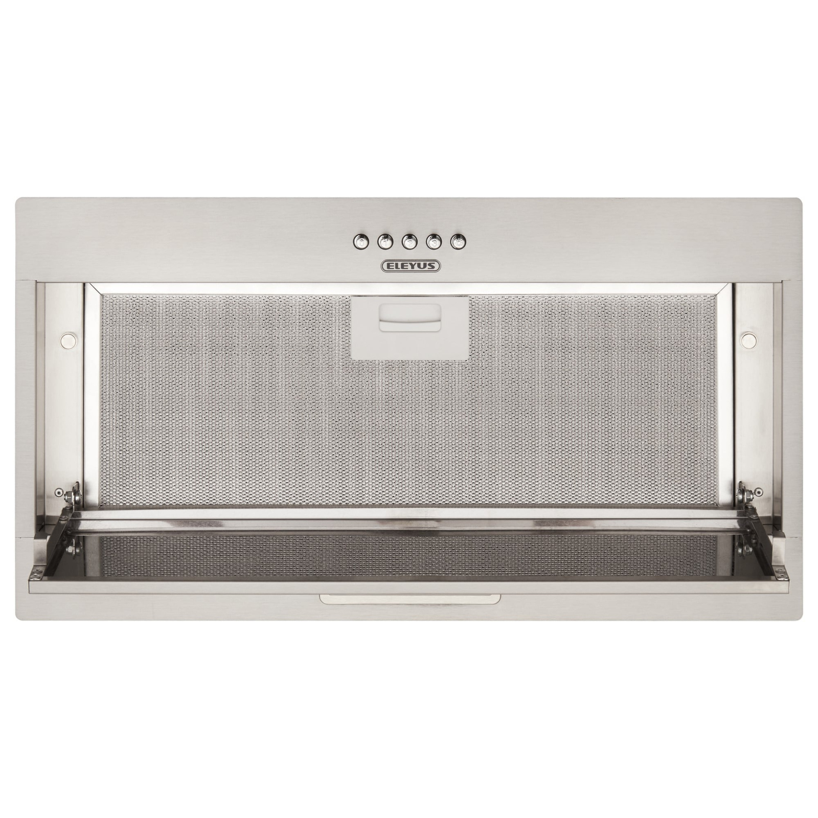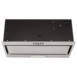 Витяжка повністю вбудовується в звичайну кухонну шафку шириною 60 см. Видимою залишається тільки передня панель з нержавіючої сталі, яка стійка до вологи та високих температур. Лаконічний дизайн витяжки гармонійно поєднується з кухнею і в стилі мінімалізм, хай-тек чи модерн.