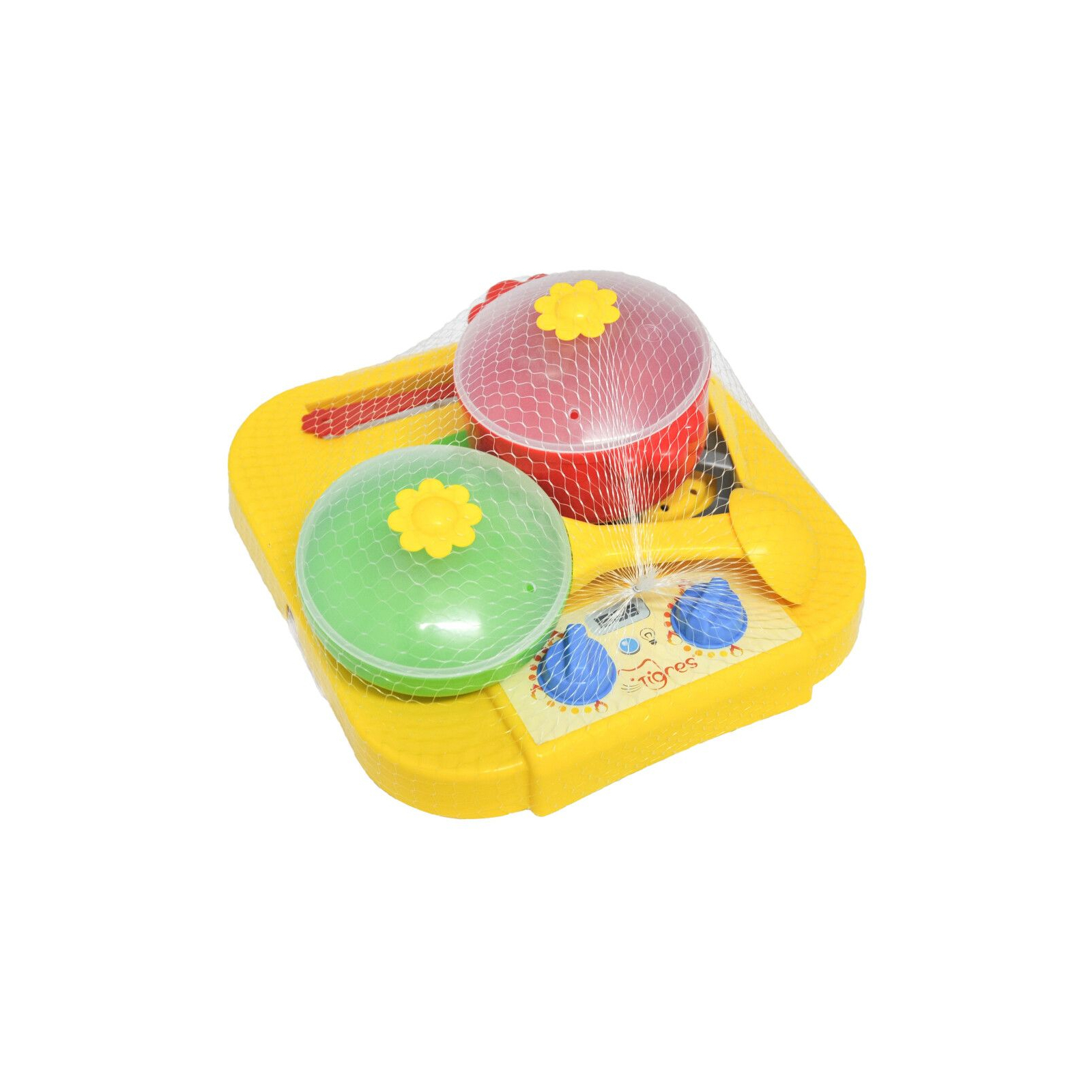 Набір іграшкового посуду столовий «Ромашка» з плитою 7 елементів від українського виробника Тигрес виготовлений з безпечного міцної харчової пластмаси і підходить для використання в мікрохвильовій печі і посудомийній машині.