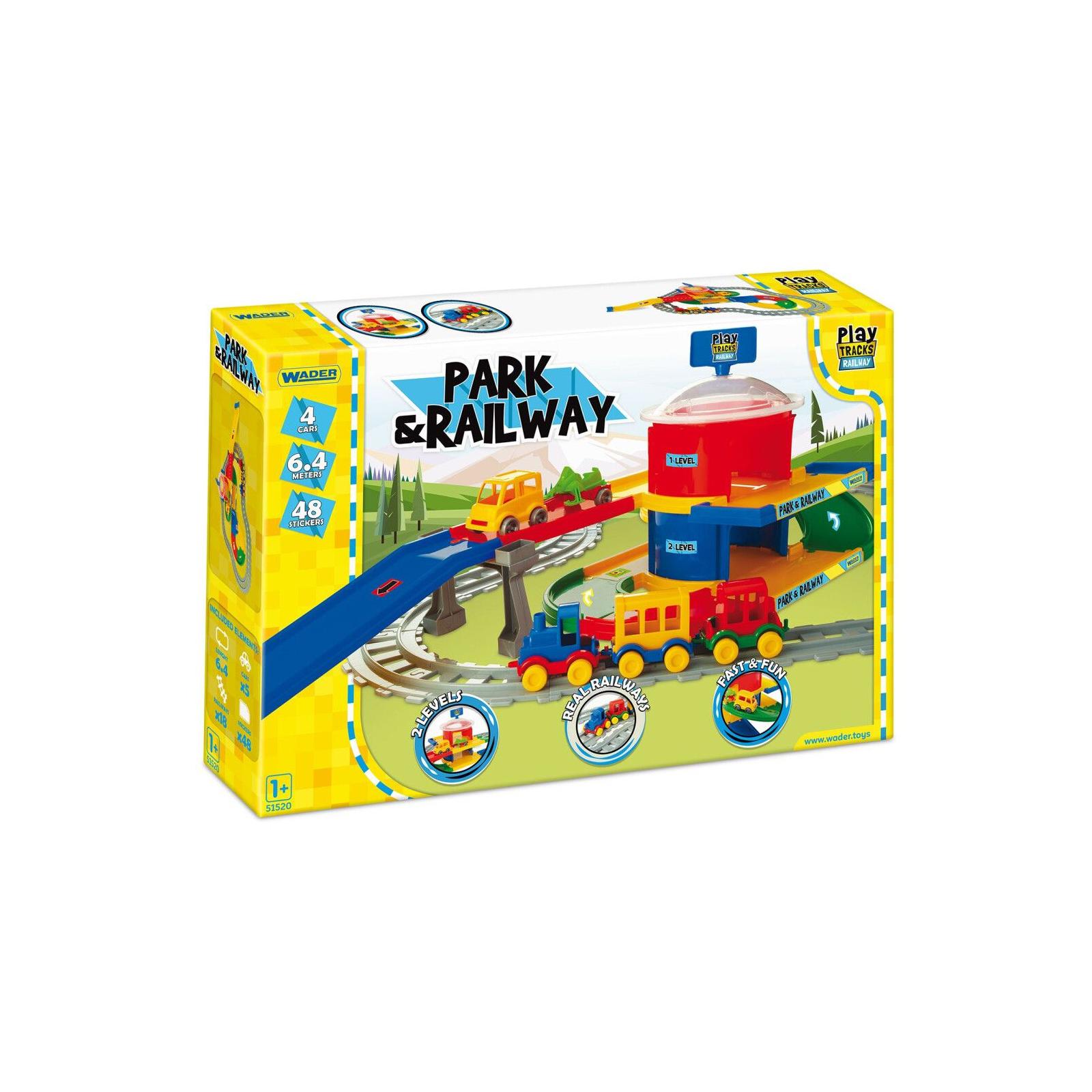 Play Tracks вокзал 6,4 м – це велике містечко, яке сподобається кожному маленькому любителю машин і потягів. З елементів набору можна скласти залізничну і автомобільну дороги, загальною довжиною 6,4 м. До складу також входять 4 транспортні засоби, 48 наклейок і елементів для вирізання, а також стовпи, які дозволять скласти віадук. Перевагою цього містечка є різноманітність елементів, завдяки яким гра стає дуже цікавою та захопливою. Набір дозволяє придумувати багато сценаріїв ігор, розвиває уяву дітей і спонукає до креативності. Ігри набором покращують руховий розвиток наймолодших, особливо дрібної моторики, їх мануальні здібності, точність рухів і зорово-моторну координацію, навчають логічного мислення і просторової орієнтації. Під час гри дитина знайомиться з принципами дорожнього руху, а також вчиться як безпечно переходити дорогу. Всі елементи виготовлені з високоякісного безпечного для дітей і міцного матеріалу, завдяки чому всі частини траси зберігають вигляд і колір протягом багатьох років. Набір упакований в гарну коробку, ідеальну на подарунок.