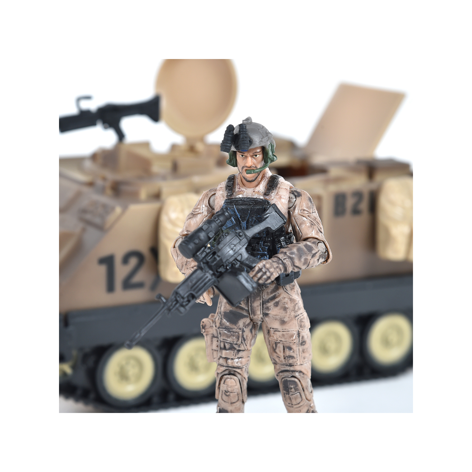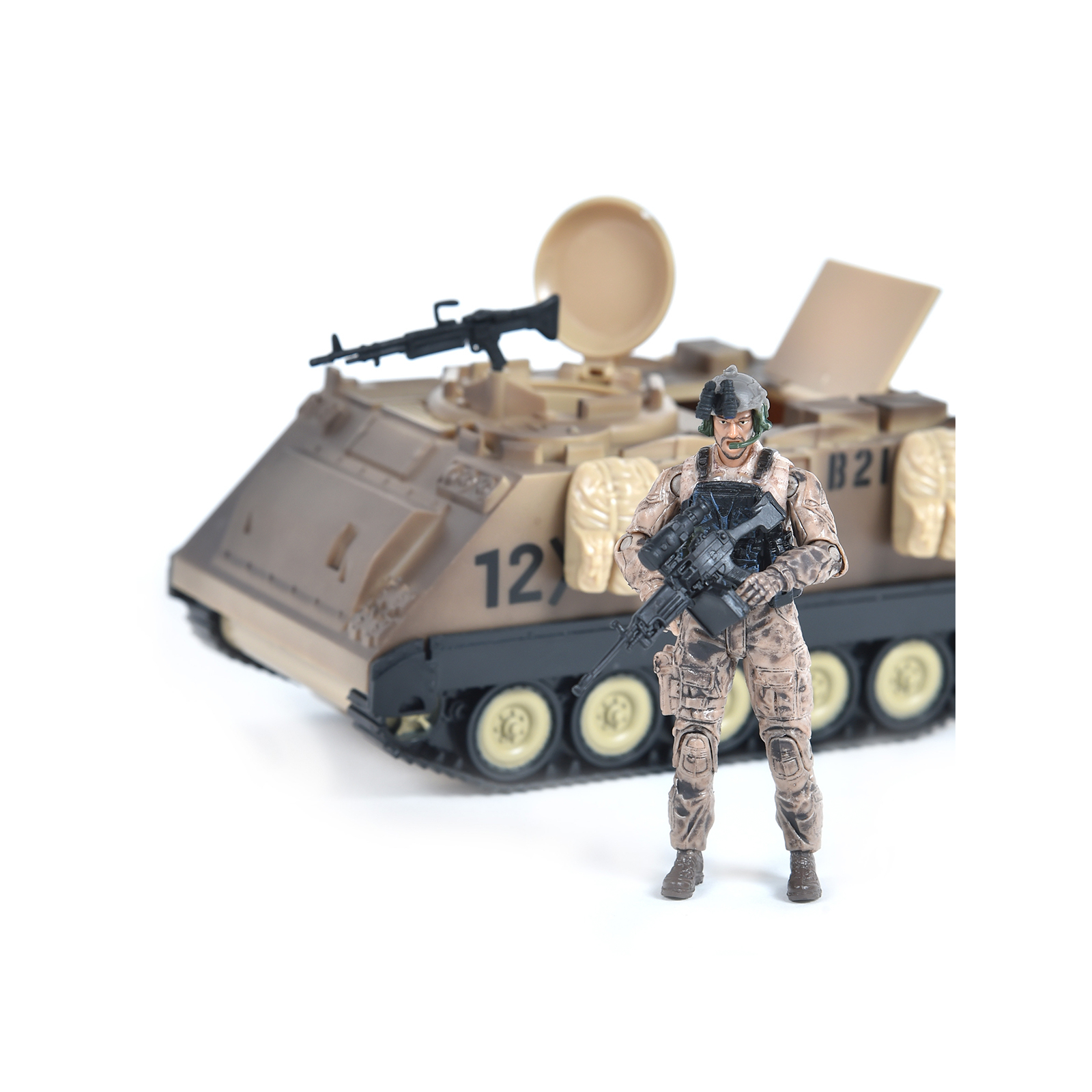 В наборі 1 броньований транспортер і 1 фігурка військового з аксесуарами!