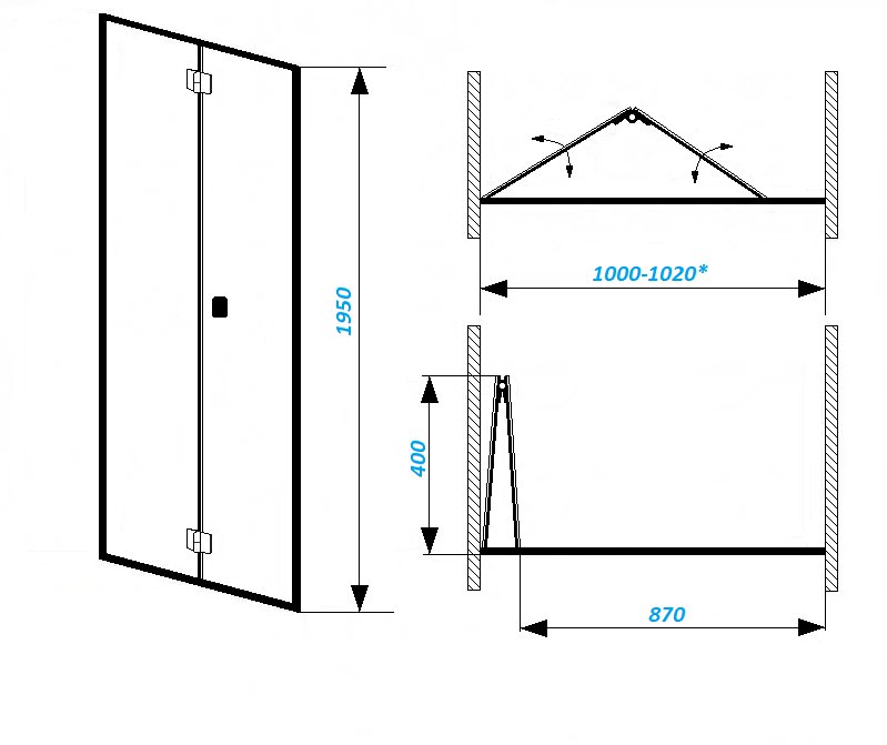 душевая дверь ceruttispa bella d101b 100x195 стекла прозрачные, профиль черный