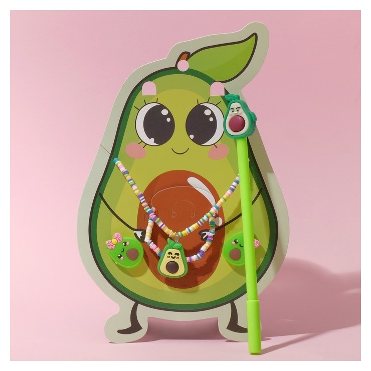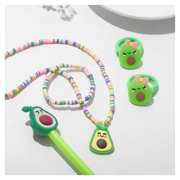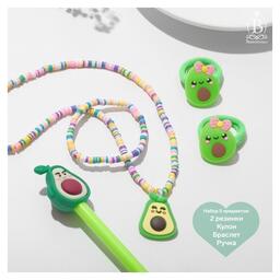 Набор детский "Выбражулька" 5 предметов: 2 резинки, кулон, браслет, ручка, авокадо, цветной