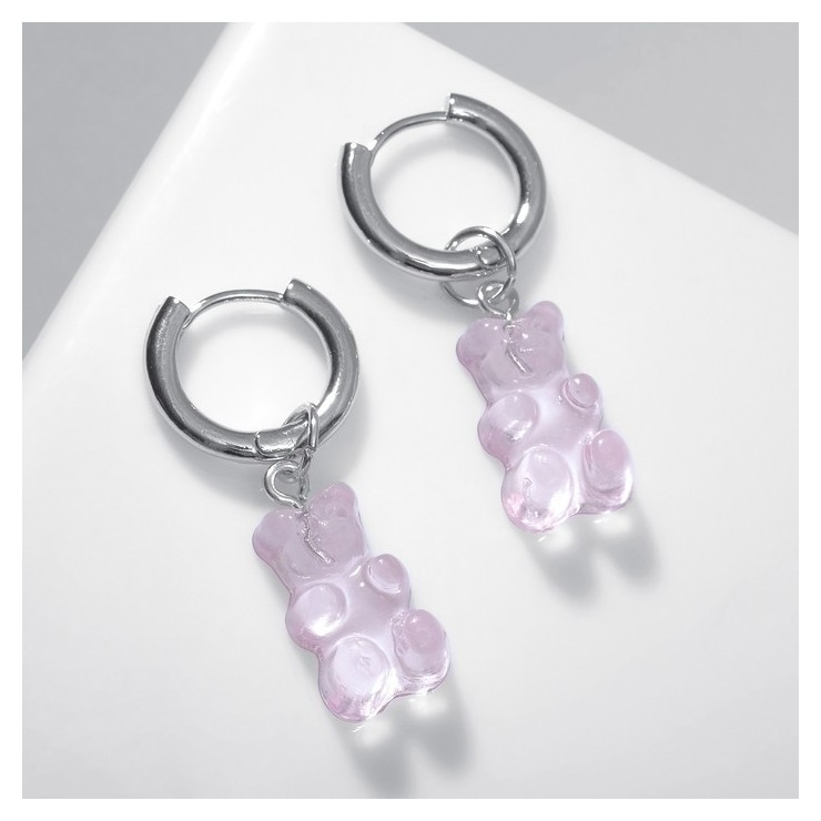 Серьги "Мармеладные мишки" трансформер, цвет розовый в серебре