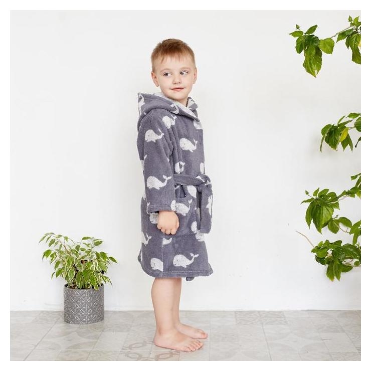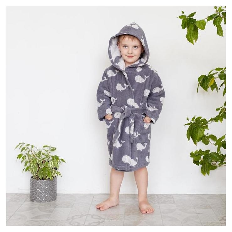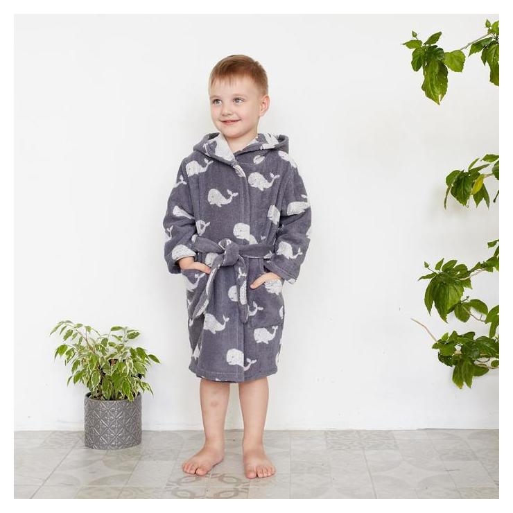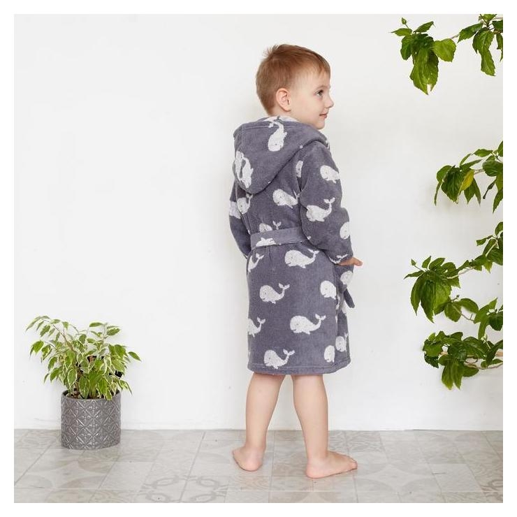 Халат махровый детский крошка Я «Зоопарк» размер 30, цвет серый, 100% хлопок 360 г/м2