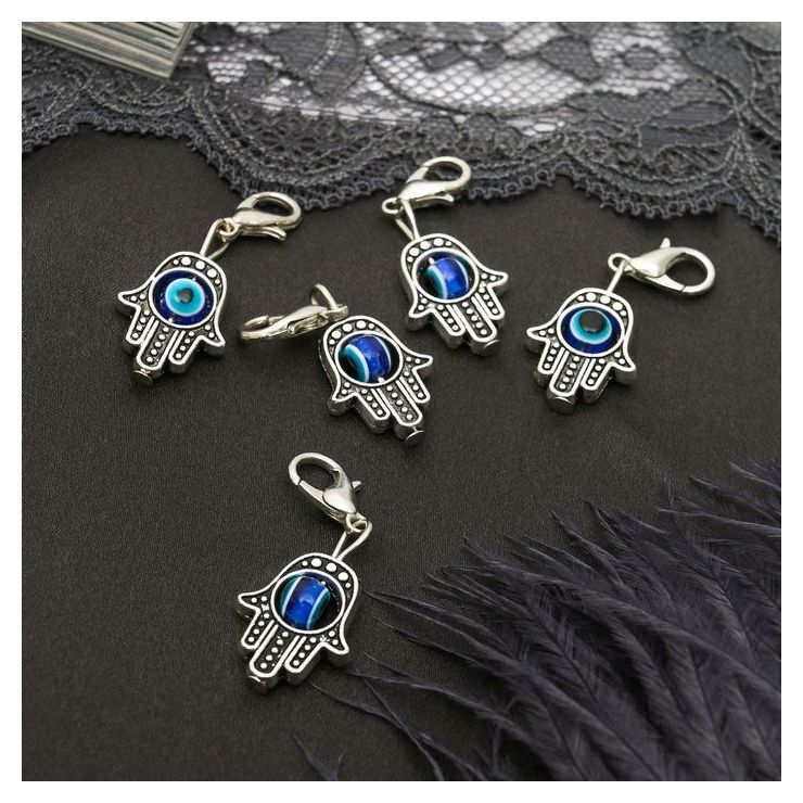 Ни один стиляга не будет выглядеть современно без искусно подобранных украшений, которые завершат его образ! Бижутерия — это современная недорогая альтернатива изделиям из золота и прочих драгоценных металлов. Шармик "Оберег" рука Хамса, цвет синий в серебре — это то, что добавит вам шарма!