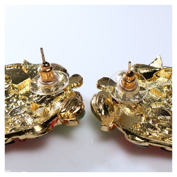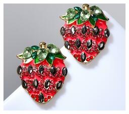 Серьги "Ягода" клубника с листьями, цвет красно-зелёный в золоте