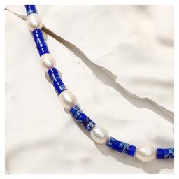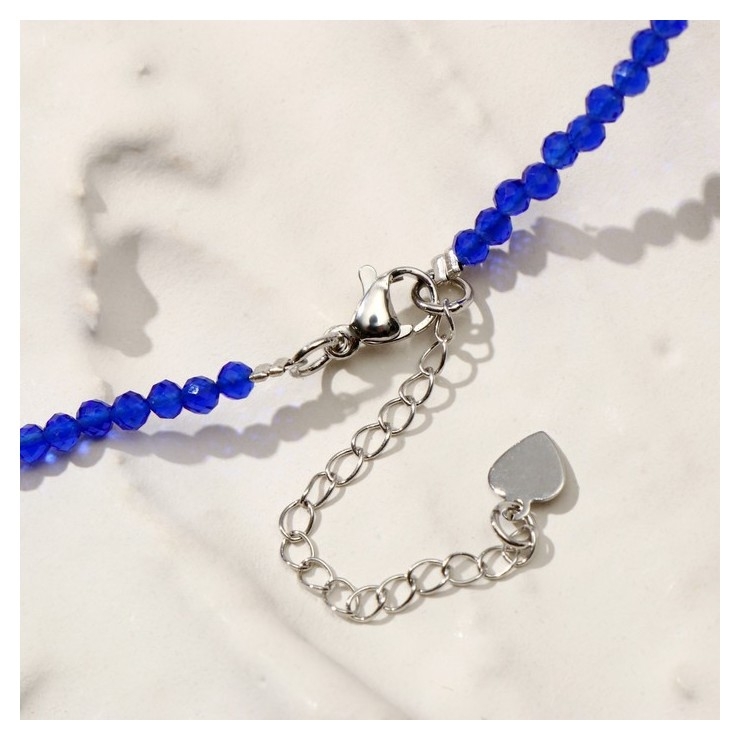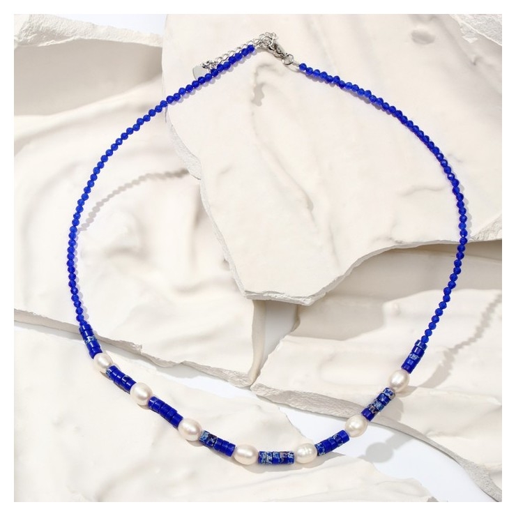 Колье " камней" (Шпинель+варисцит+жемчуг), цвет синий, 42см с удлинителем 5см