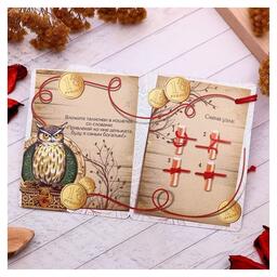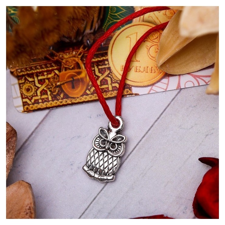 Браслет-оберег "Денежная нить" кошельковая сова, цвет красный