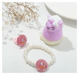 Набор детский "Выбражулька" 3 предмета: браслет, кольцо, бальзам для губ, единорожки, цветной